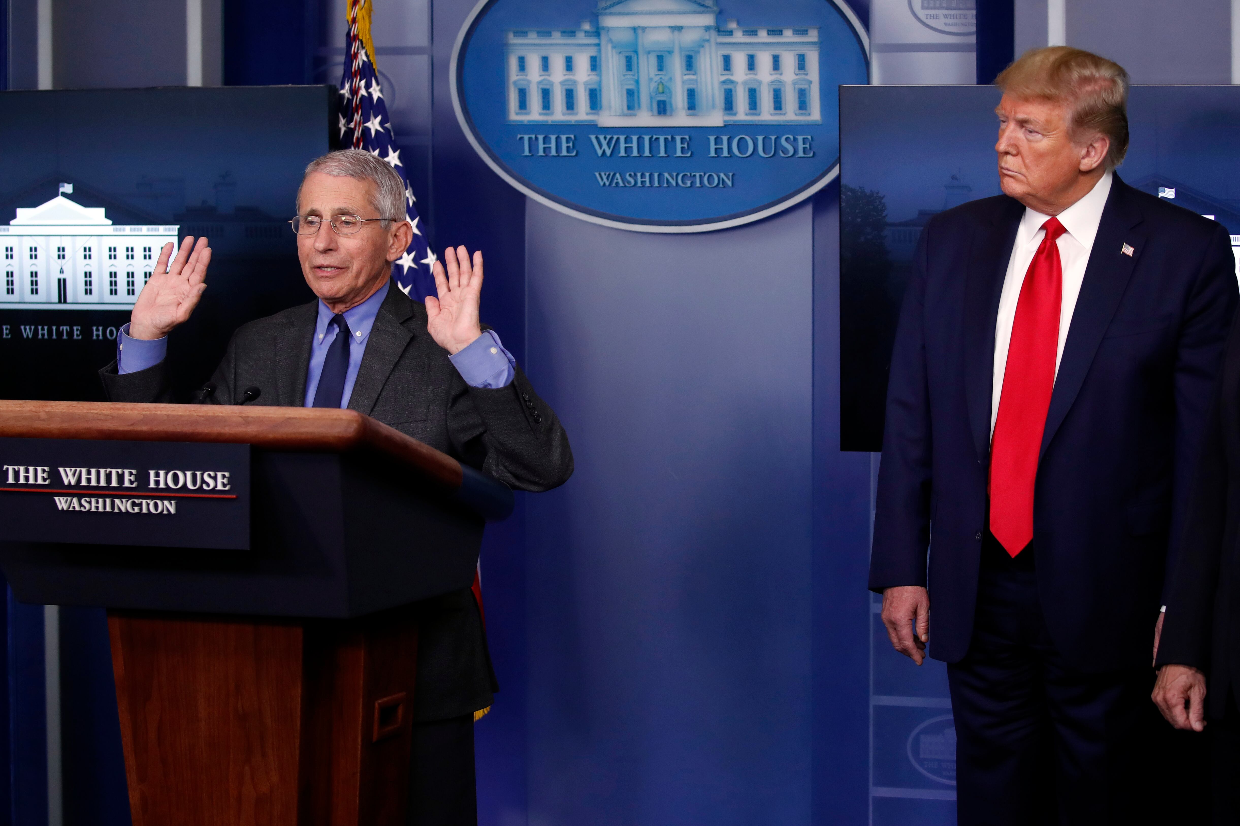 En varias ocasiones, el experto de 79 años, mundialmente reconocido, ha tenido que precisar o corregir los comentarios del presidente sobre futuras vacunas o tratamientos contra la covid-19.