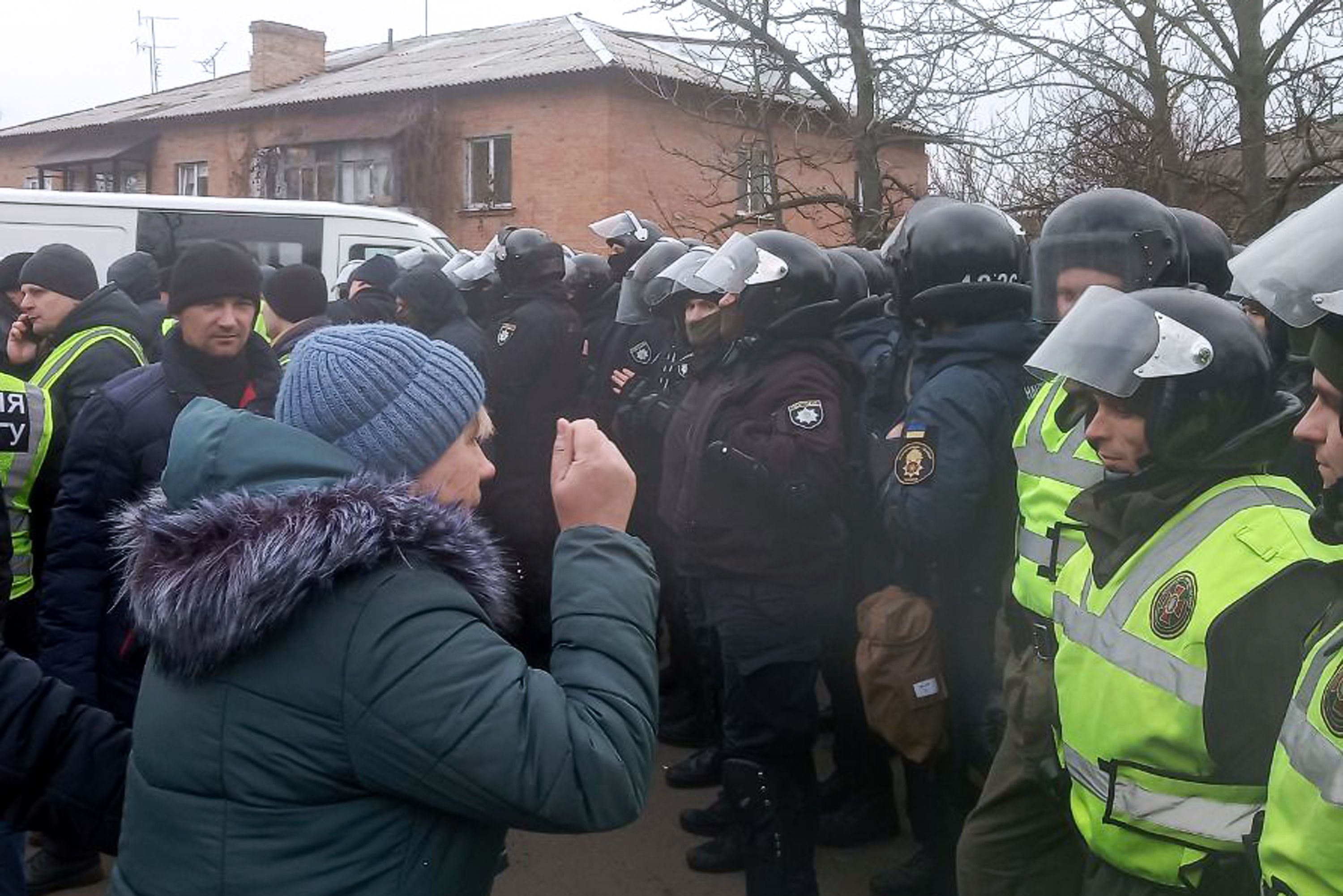 Desde la mañana de este jueves, varios cientos de vecinos de Novi Sanzhary habían bloqueado la calle hacia el sanatorio en donde se albergaría a los rescatados de Wuhan, que quedaron atrapados en medio de la crisis epidemiológica.
