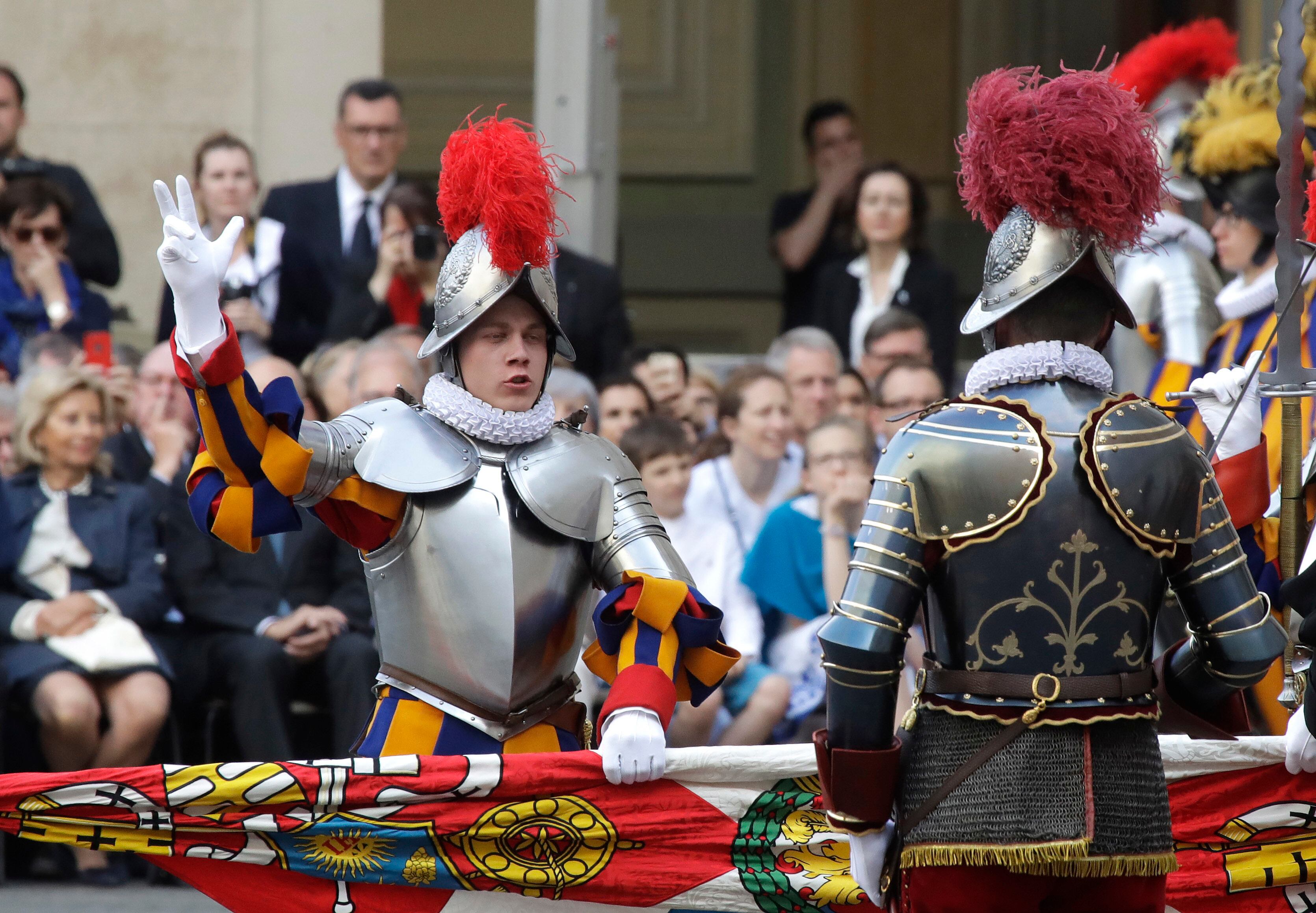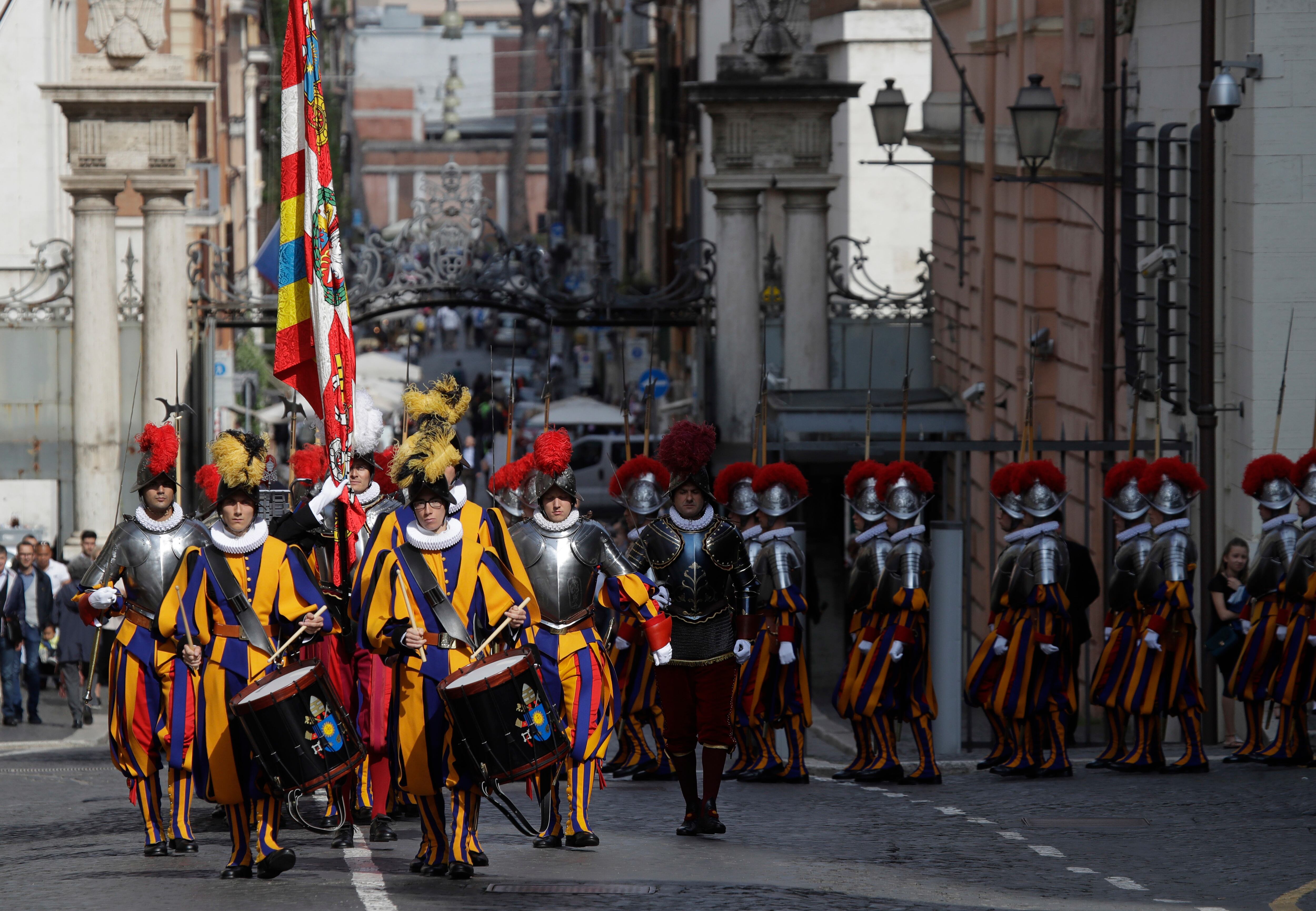 Para muchos observadores es posible que el famoso uniforme de la Guardia Suiza con rayas azules, amarillas y rojas, un collar plisado de tela blanco vistoso y casco de metal ligero con una pluma de avestruz, no sea adecuado para el calor del verano boreal, pese a que a la inmensa sala del Vaticano cuenta con aire acondicionado.