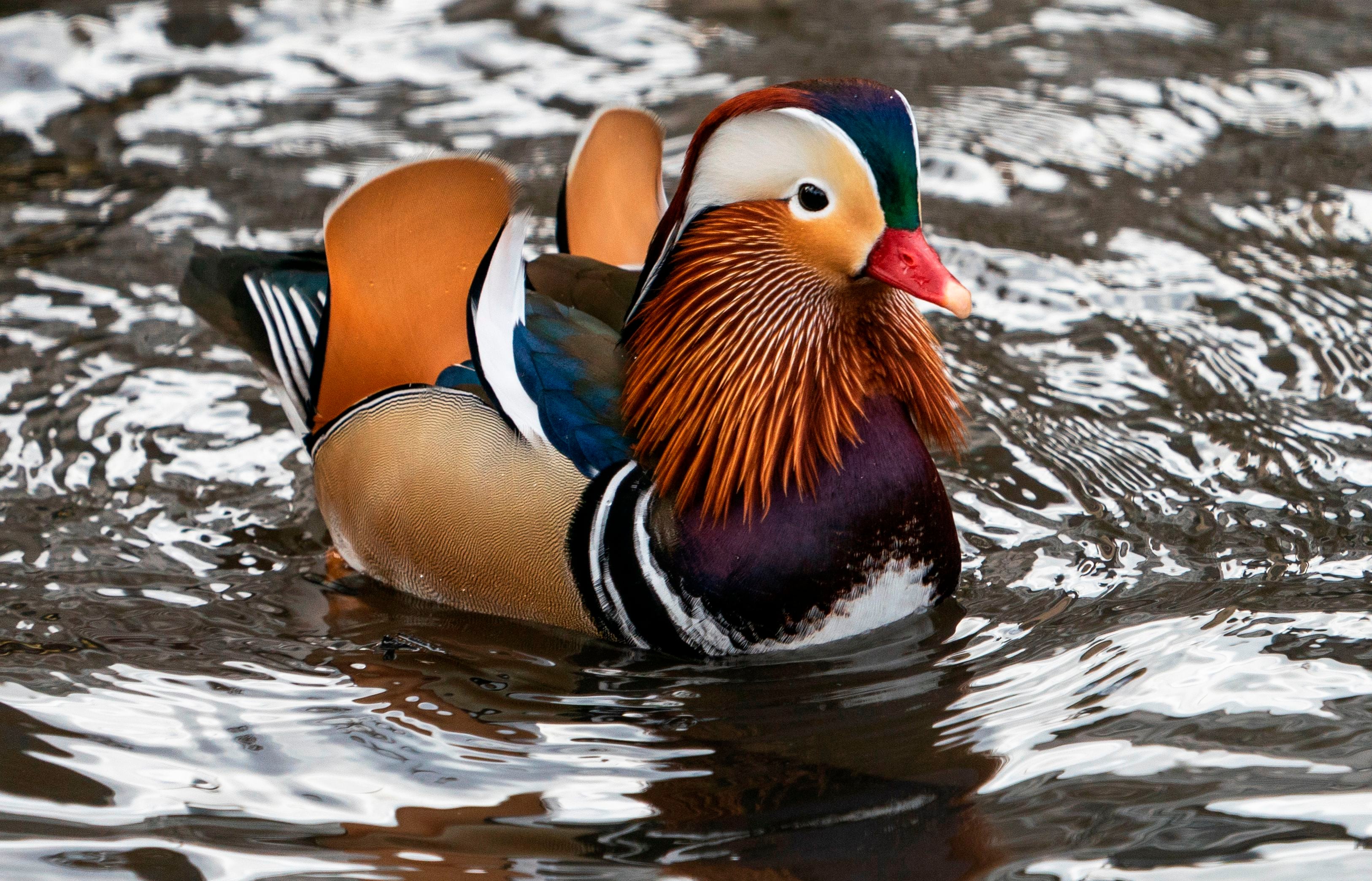 Con su impresionante plumaje multicolor, este pato de origen asiático apareció en el famoso parque de esta ciudad en un hermoso día de octubre y fue captado por la cámara de un amante de las aves raras, David Barrett, que compartió el video en la red Twitter.