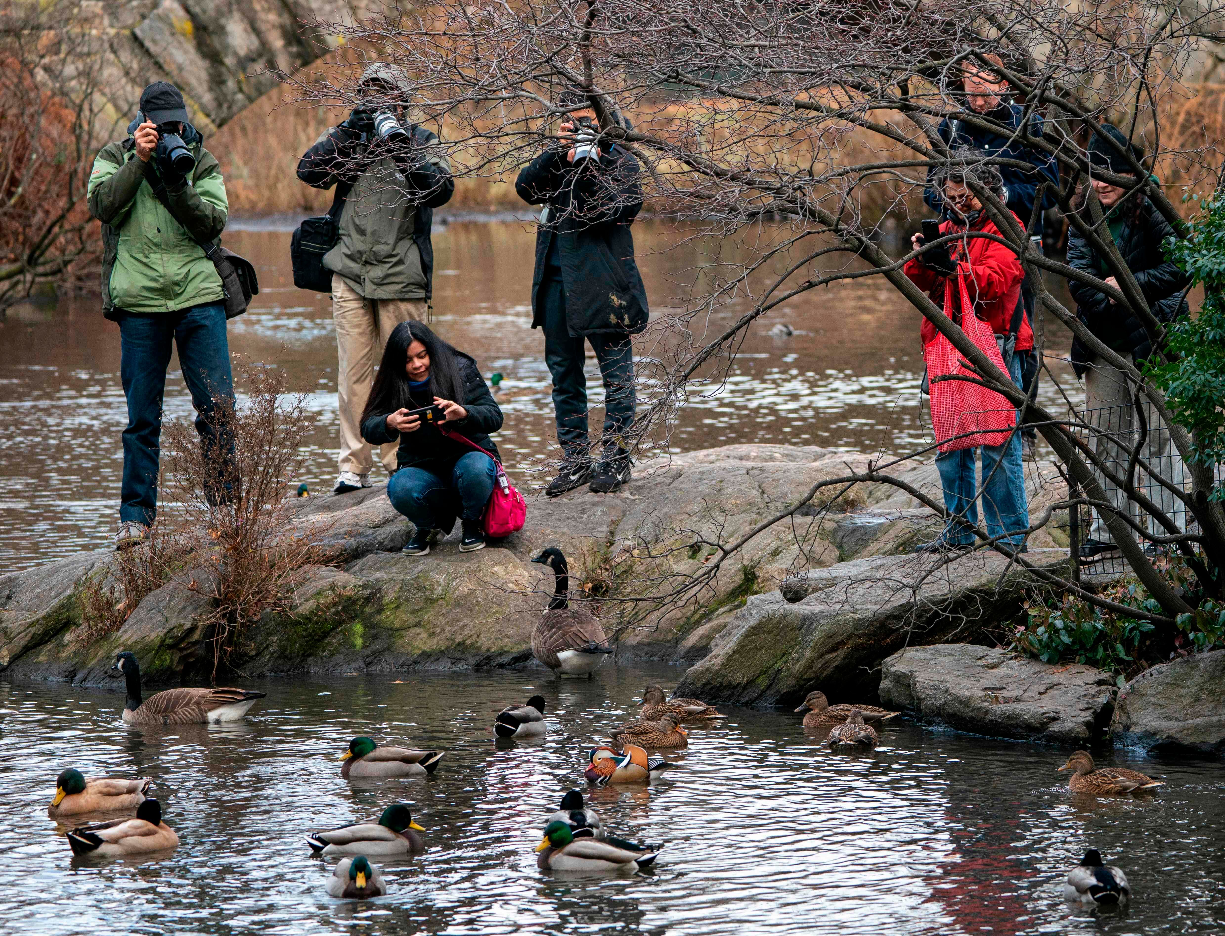 El martes, el pato mandarín se relajaba bajo los objetivos de los fotógrafos en el estanque situado en el sureste de Central Park, a pocos metros del gran hotel The Plaza, picoteando las migas de pan que le lanzaban los curiosos.