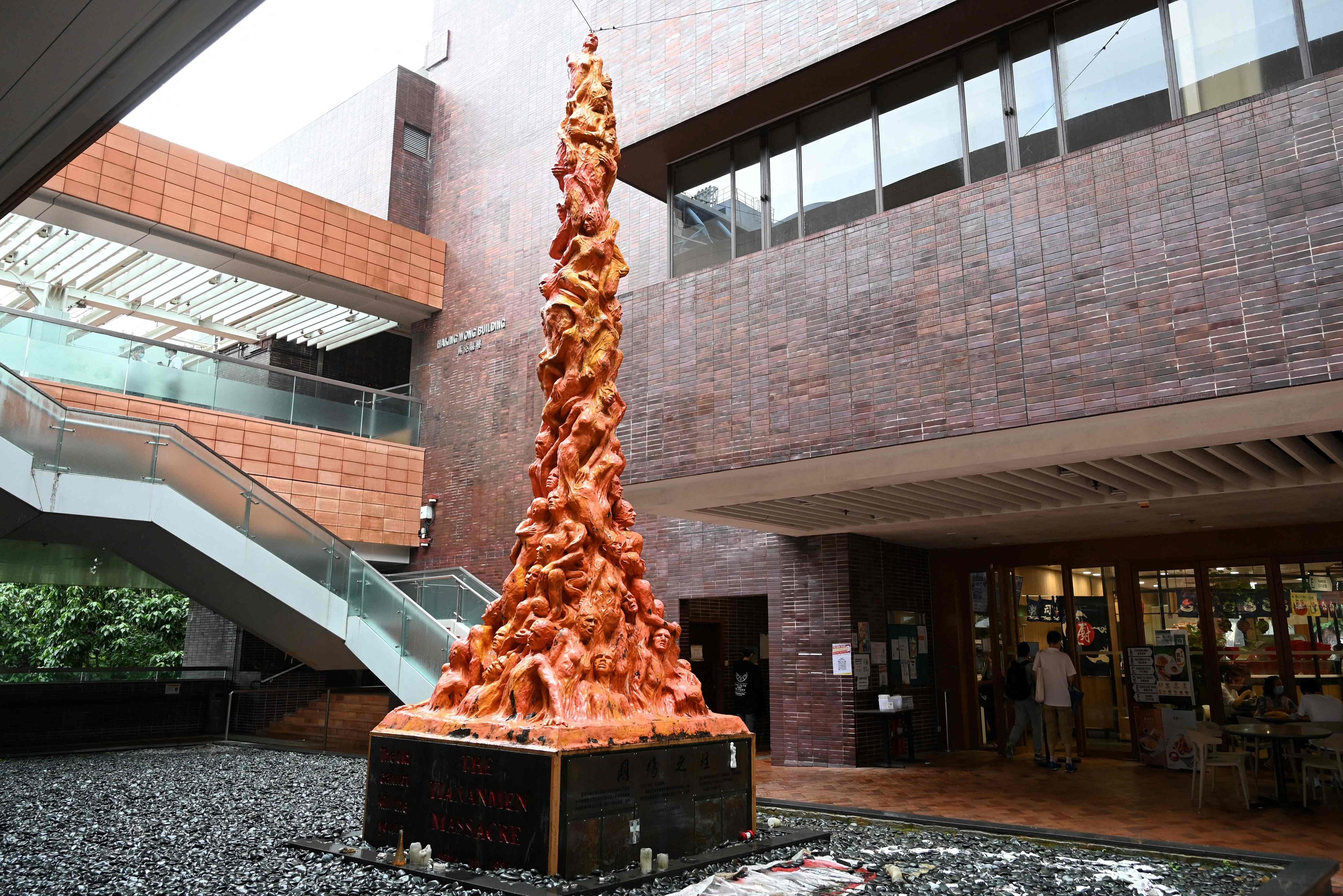 En octubre de este año, funcionarios del establecimiento ordenaron retirar la escultura, en la que se representan 50 rostros angustiados y cuerpos lacerados apilados unos sobre otros, en homenaje a los manifestantes prodemocracia asesinados por tropas chinas en los alrededores de la plaza de Tiananmen, en 1989.