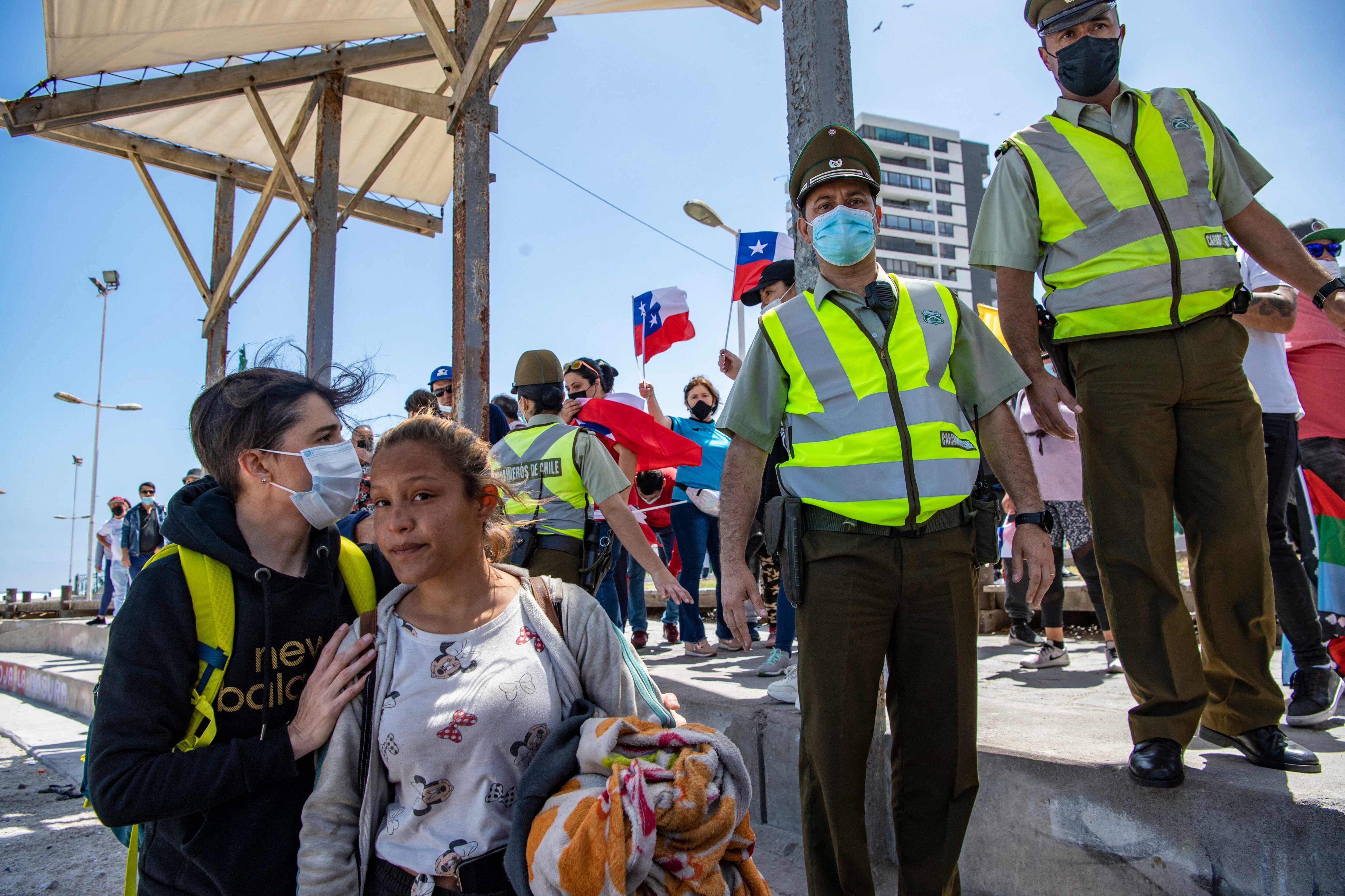 Iquique. Unas tres mil personas marcharon este sábado contra la migración indocumentada en la ciudad de Iquique, al norte de Chile, un día después del violento desalojo de una plaza donde numerosas personas, en su gran mayoría venezolanos con niños, dormían en carpas. Los carabineros tuvieron que controlar escaramuzas provocadas por residentes chilenos que se acercaron a agredir a venezolanos en situación de calle.