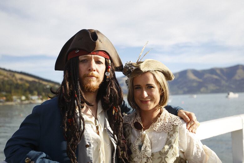 La ceremonia se celebró en un navío convertido en barco pirata en la ciudad de Akaroa, en el sur.