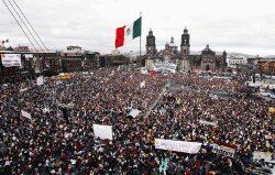 México D. F. AFP, Reuters y DPA. Decenas de miles de simpatizantes del excandidato presidencial de izquierda, Andrés Manuel López Obrador, se reunieron en la plaza principal de la capital, el Zócalo, donde el político se autoproclamó como “presidente legítimo”.