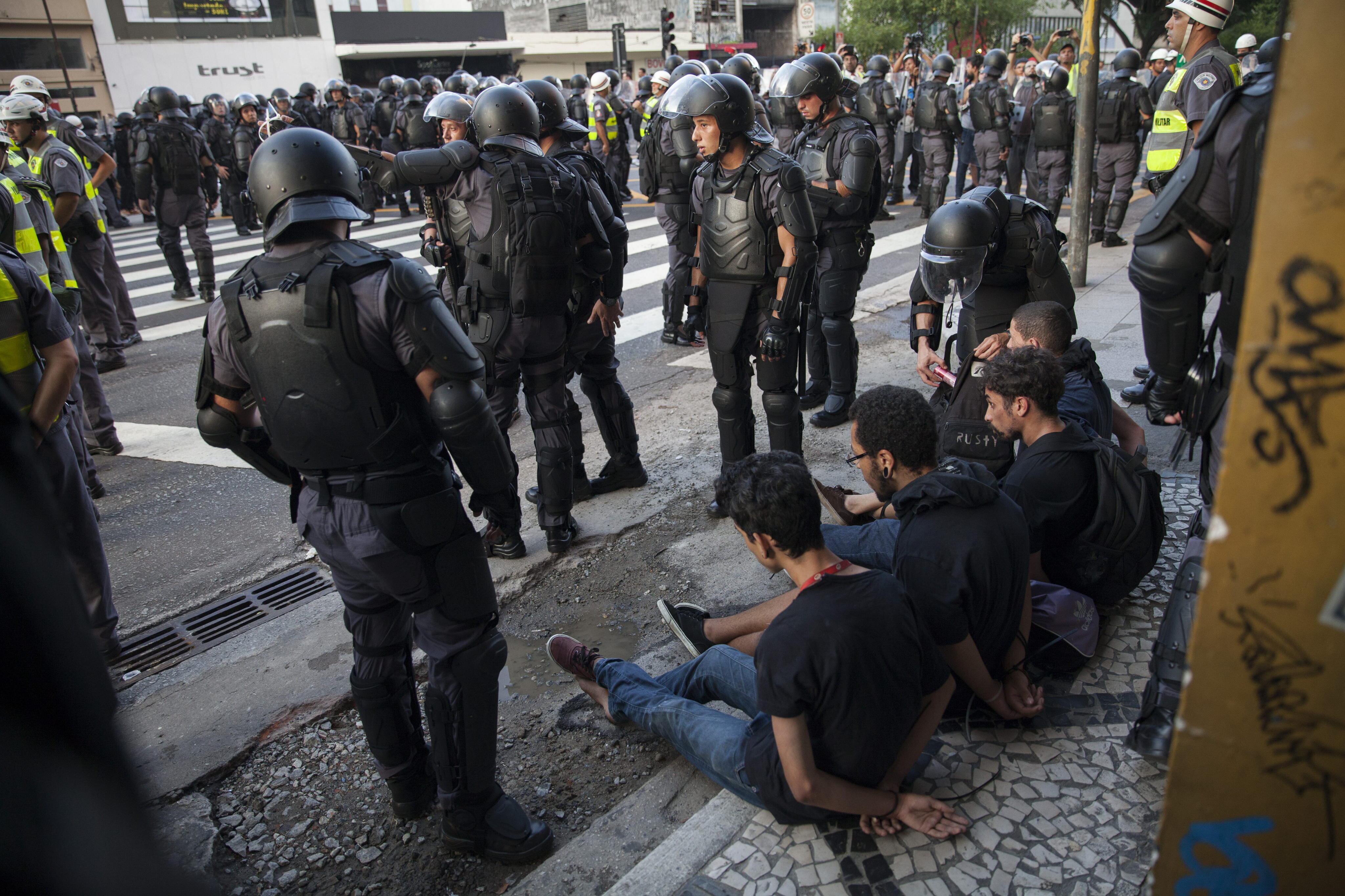 Hasta las 10:45 p. m. hora local, la Policía informó de la detención de unos 50 manifestantes en Sao Paulo, la mayor metrópoli de Brasil.