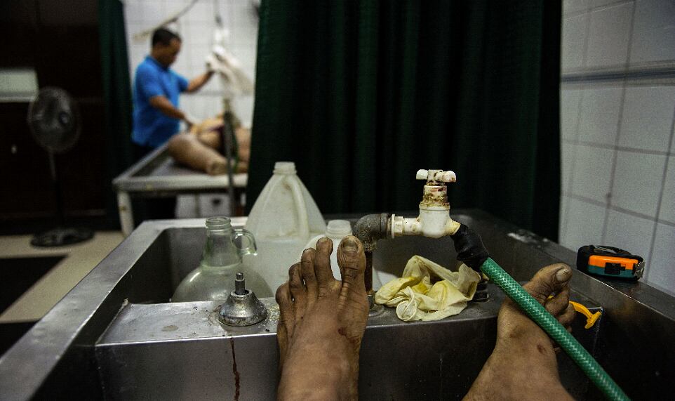 "Es triste. Mueren y nadie viene a buscarlos", dice Ormeneta, mostrando los cadáveres ennegrecidos de la morgue.