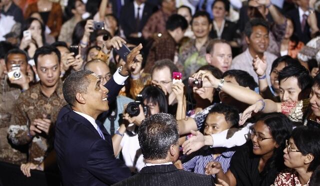 “Aunque este país de mi infancia ha cambiado mucho, el espíritu de tolerancia que se inscribe en la Constitución, y simbolizado por vuestras mezquitas, iglesias y templos, perdura”, celebró durante un discurso ante unas 6.000 personas entusiastas de la Universidad de Indonesia. “Es por ello que Indonesia desempeñará un papel tan importante a lo largo del siglo XXI”.
