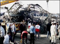 Varios asaltantes que circulaban en moto abrieron fuego con metralletas contra el autobús, que se vio obligado a frenar, antes de hacer estallar la bomba a distancia.