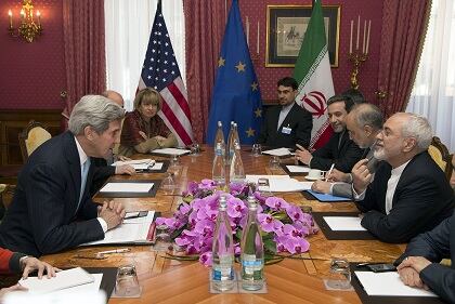 El secretario de Estado norteamericano, John Kerry (izquierda), reunido el jueves con su homólogo de Irán, Mohammad Javad Zarif (derecha), en Lausana, Suiza. (AFP)