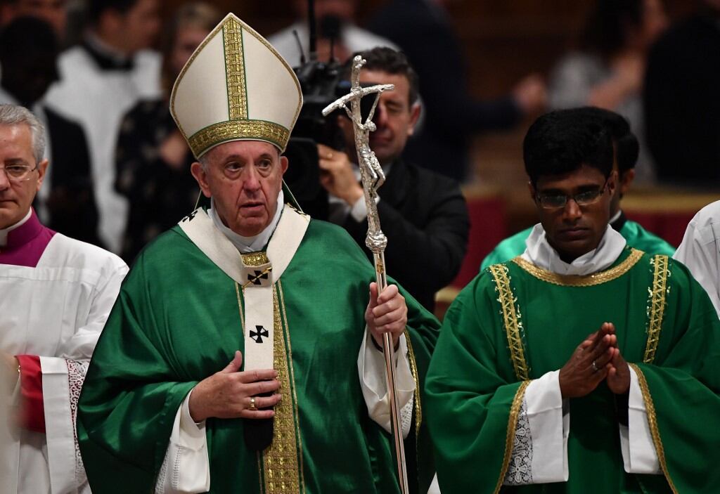 A la ceremonia, con los celebrantes vestidos con hábitos litúrgicos verdes y acompañada de cantos antiguos, participaron más de 200 prelados entre obispos y cardenales, así como numerosos indígenas provenientes de la Amazonia, algunos con sus trajes tradicionales.