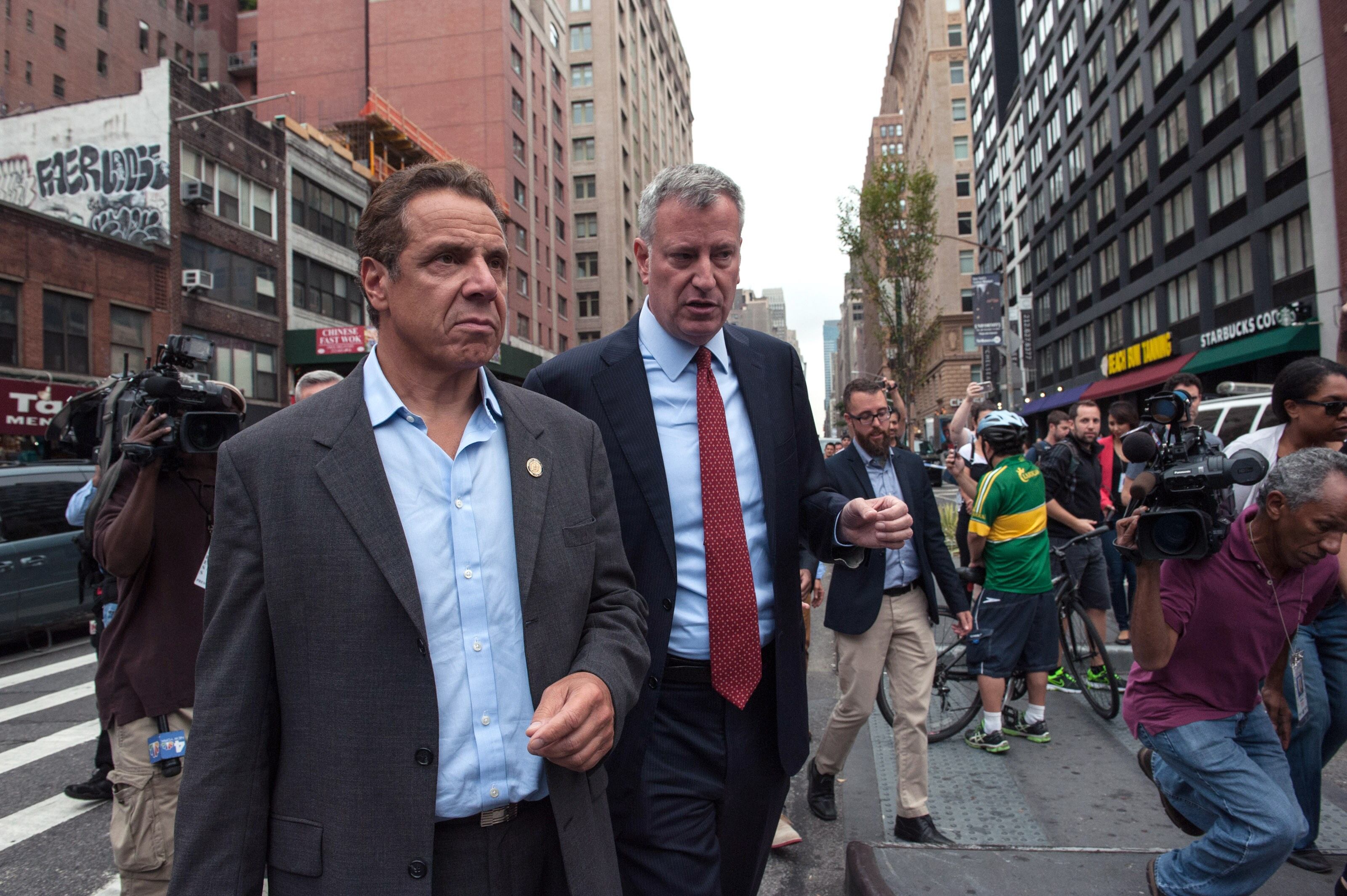Minutos antes de la conferencia, el alcalde se reunió con el gobernador, Andrew Coumo, para realizar un recorrido por el lugar de la detonación.
