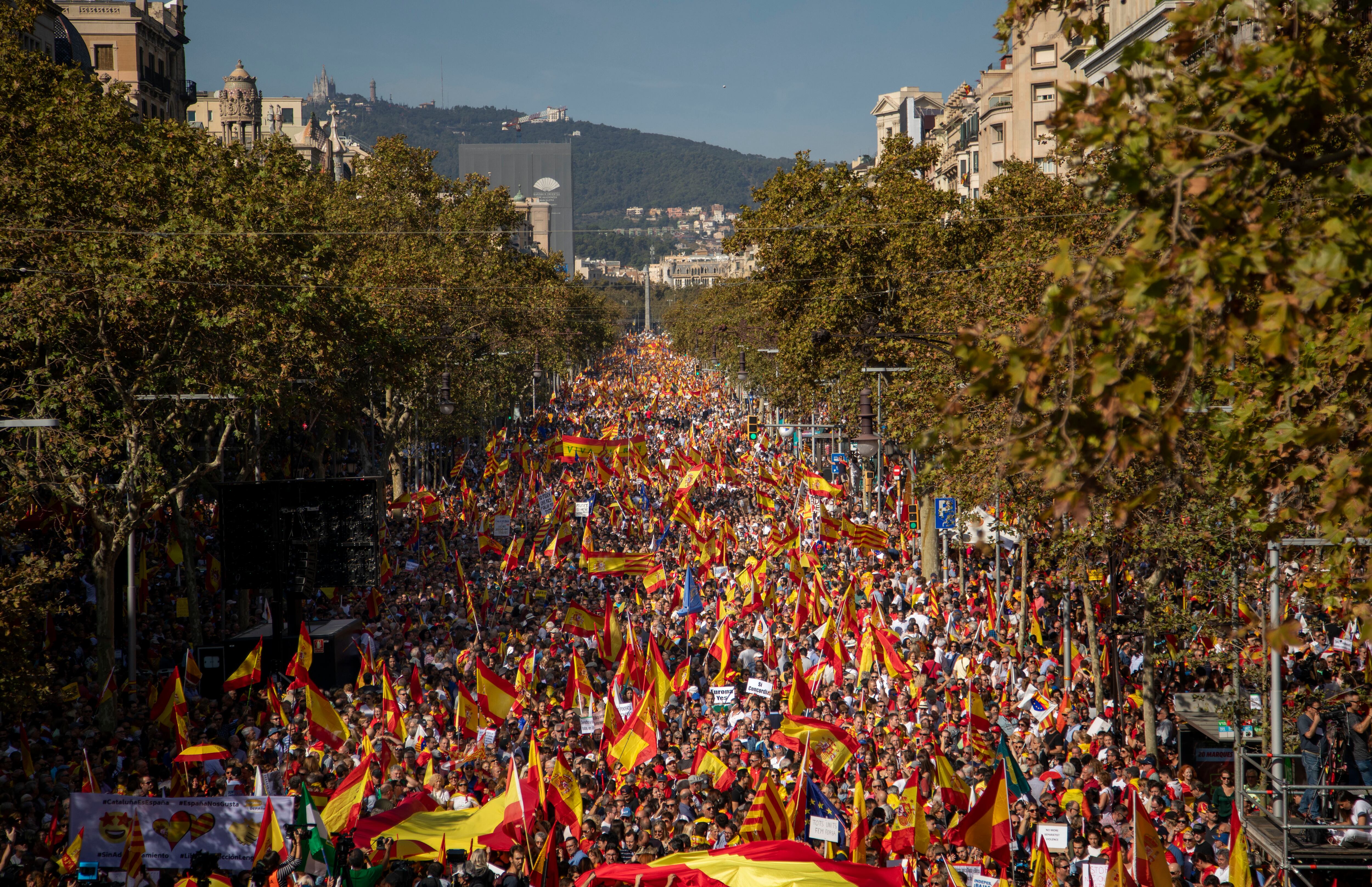 Portando banderas de España y de Cataluña y gritando “las calles son de todos”, los manifestantes, unos 80.000 según la Policía de Barcelona, recorrieron el elegante Paseo de Gracia, convocados por la entidad Sociedad Civil Catalana (SCC) y respaldados por los partidos antiseparatistas españoles.