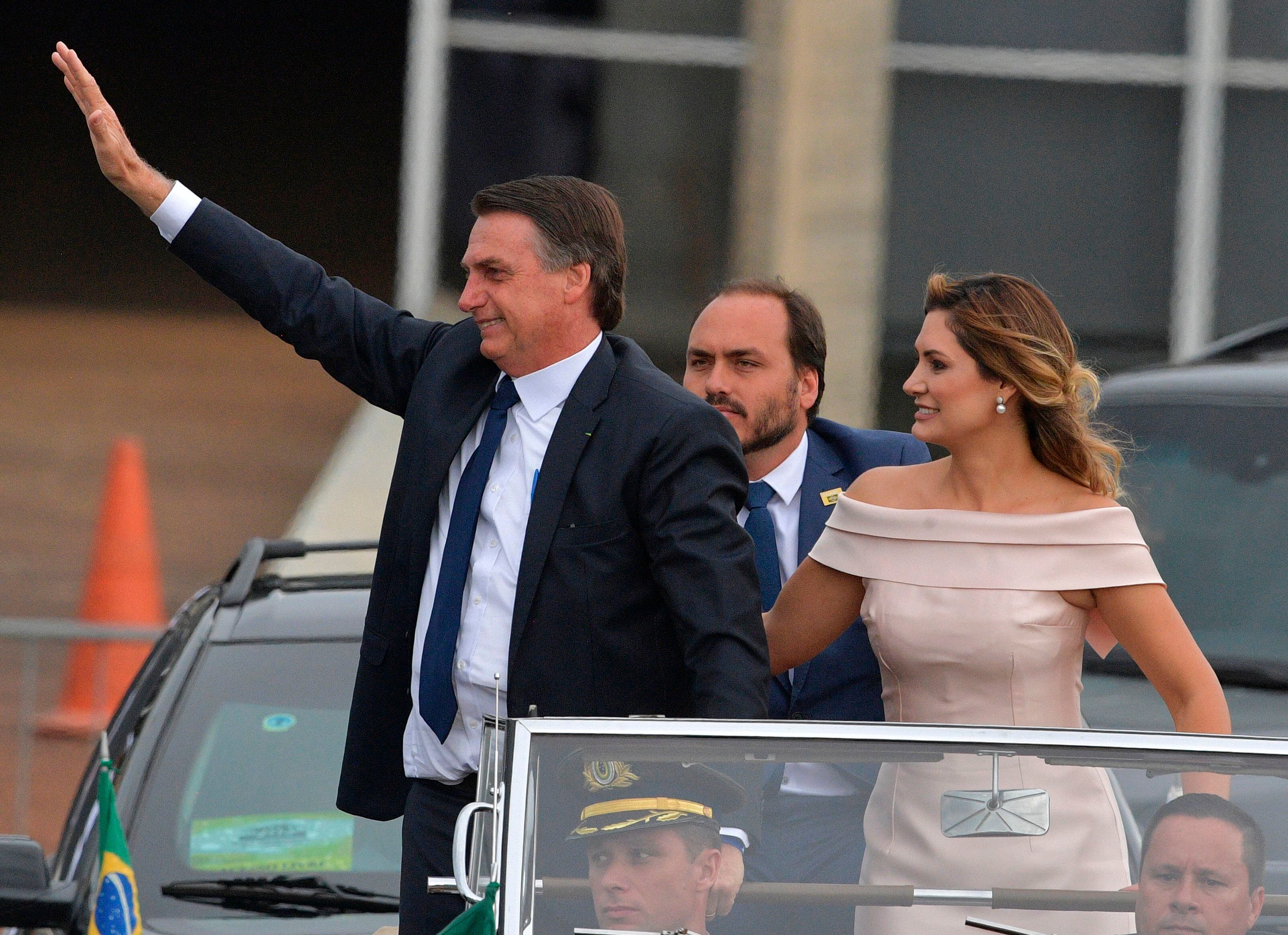 Bolsonaro y su esposa, Michelle, se pararon en un Rolls-Royce descubierto y saludaron a miles de espectadores.