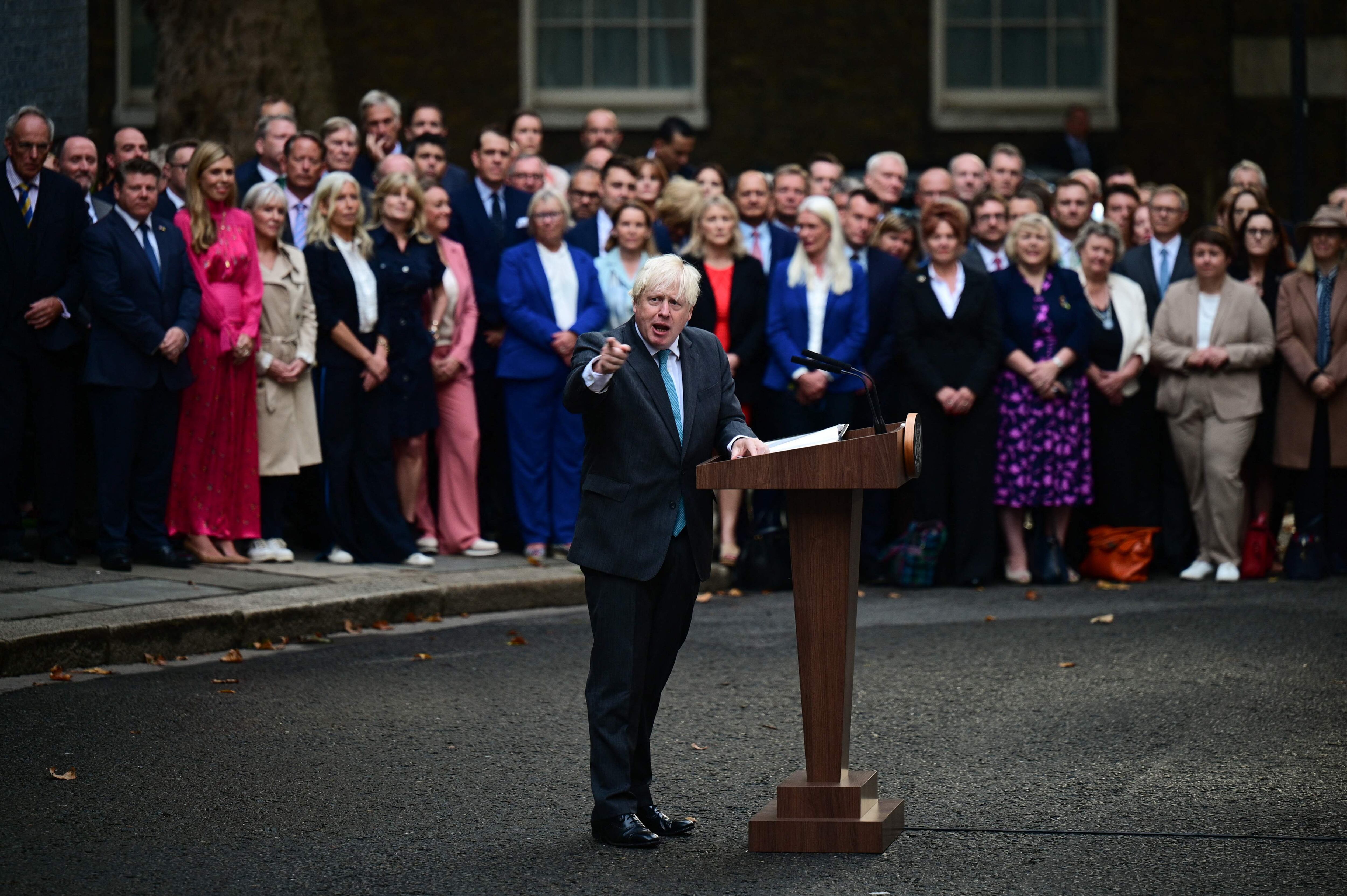 El controvertido político conservador, de 58 años, obligado a dimitir a principios de julio por sus propios diputados indignados por una multiplicación de escándalos, se despidió a primera hora de la mañana a las puertas de Downing Street, ante una multitud de seguidores y familiares.