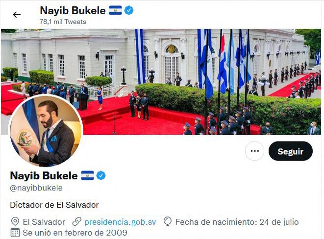 San Salvador. El presidente de El Salvador, Nayib Bukele, se autodenominó irónicamente “dictador” en su biografía en Twitter, una forma de burlarse de sus adversarios, en medio de críticas internacionales y tras una reciente marcha en el país en donde lo acusaron de concentrar el poder.