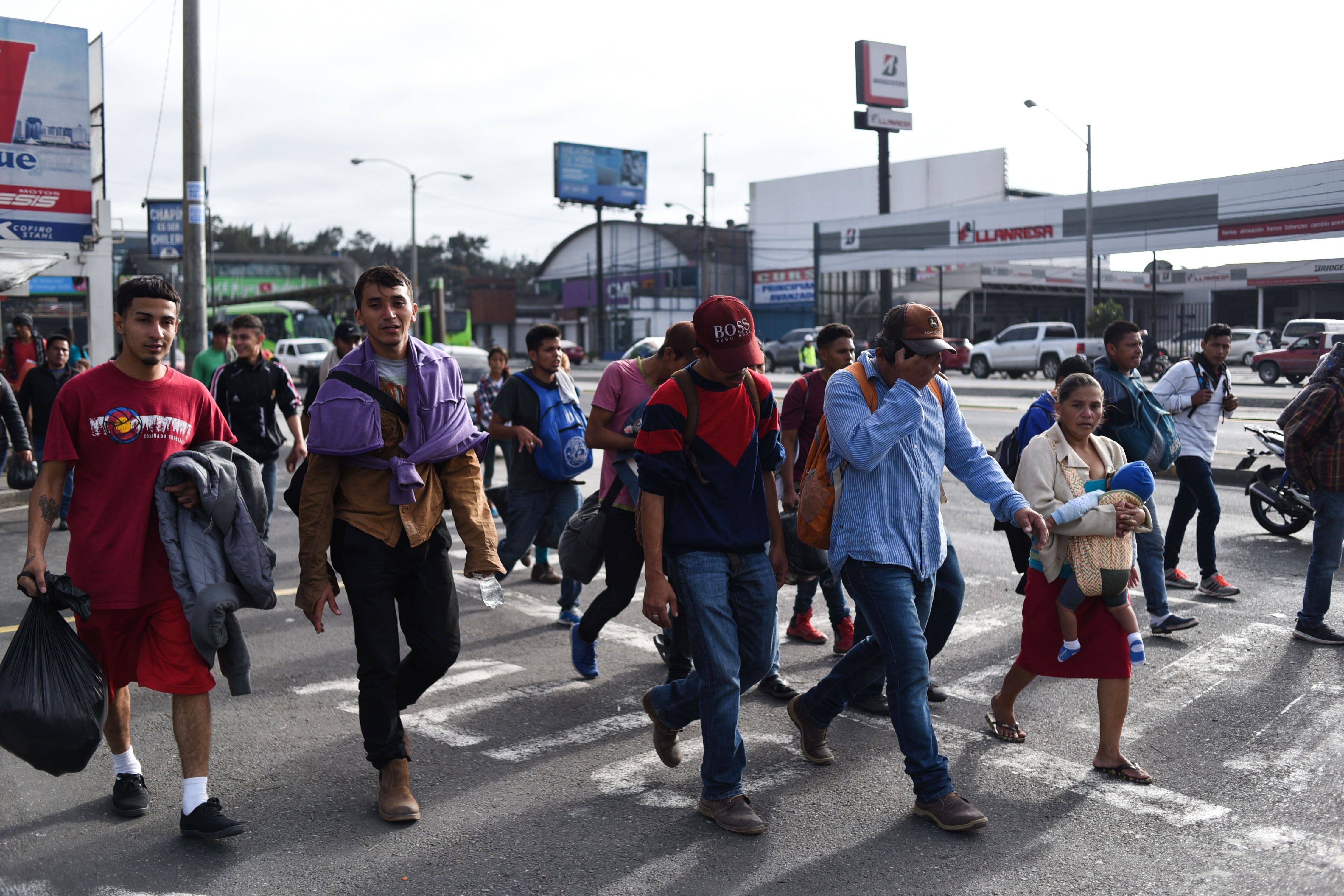 Abrigados por la temporada de frío en la capital guatemalteca, los hondureños atravesaron calles y avenidas caminando y otros pidiendo aventón a los automovilistas para dirigirse hacia el suroeste del país, al poblado de Tecún Umán, fronterizo con México.
