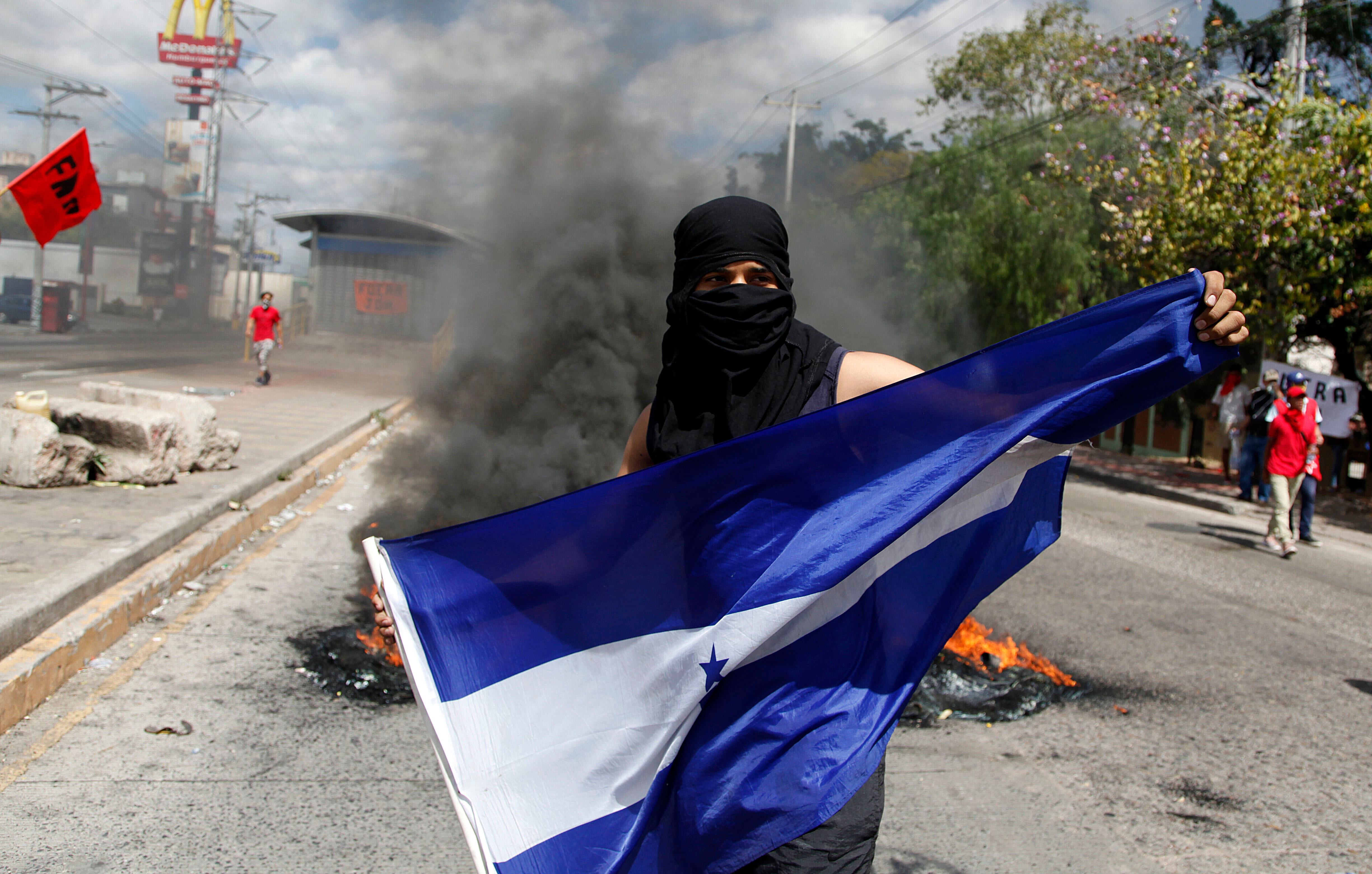 Ondeando banderas rojo y negro y algunos vistiendo chalecos, simpatizantes del partido Libertad y Refundación (Libre, izquierdista), coordinado por el derrocado presidente Manuel Zelaya (2006-2009), incendiaron neumáticos en carreteras en una docena de los 18 departamentos del país.