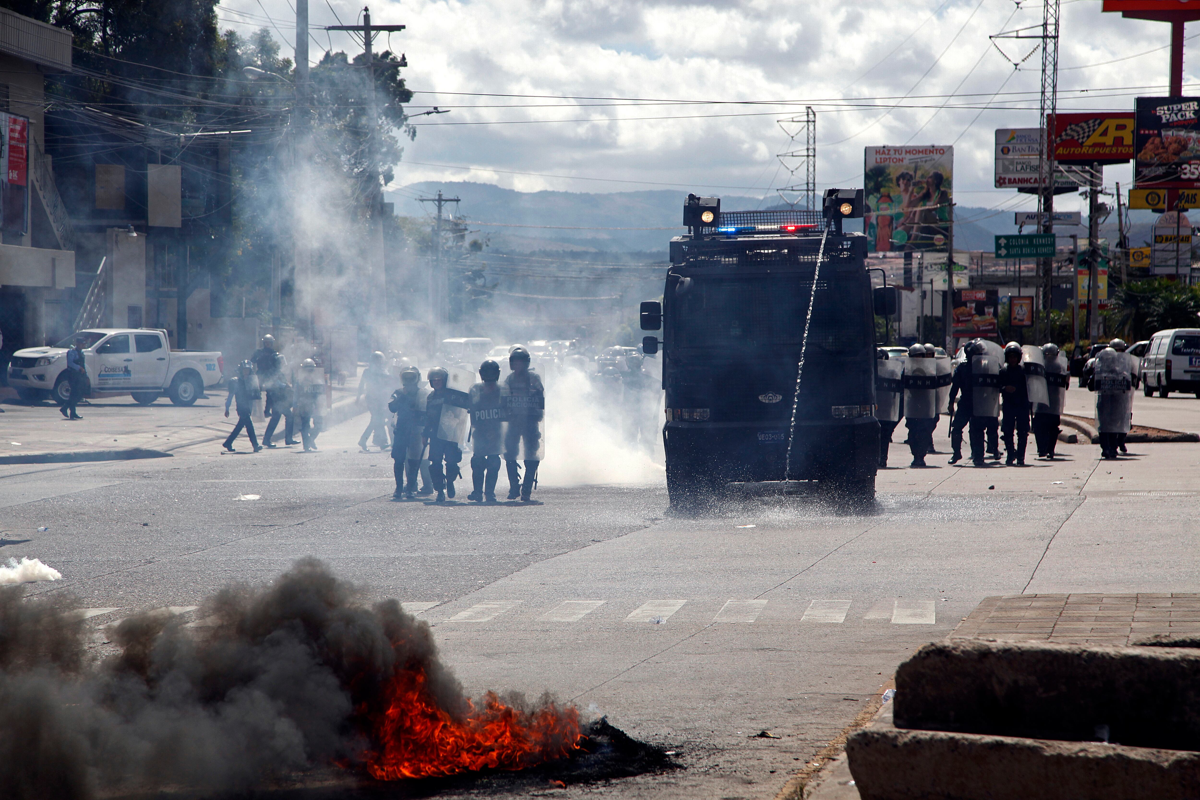 Tegucigalpa. Miles de opositores bloquearon vías en diferentes partes de Honduras en la llamada protesta de “chalecos rojos” y en algunos puntos fueron reprimidos por la Policía, al cumplirse este domingo un año de la toma de posesión del presidente Juan Orlando Hernández.