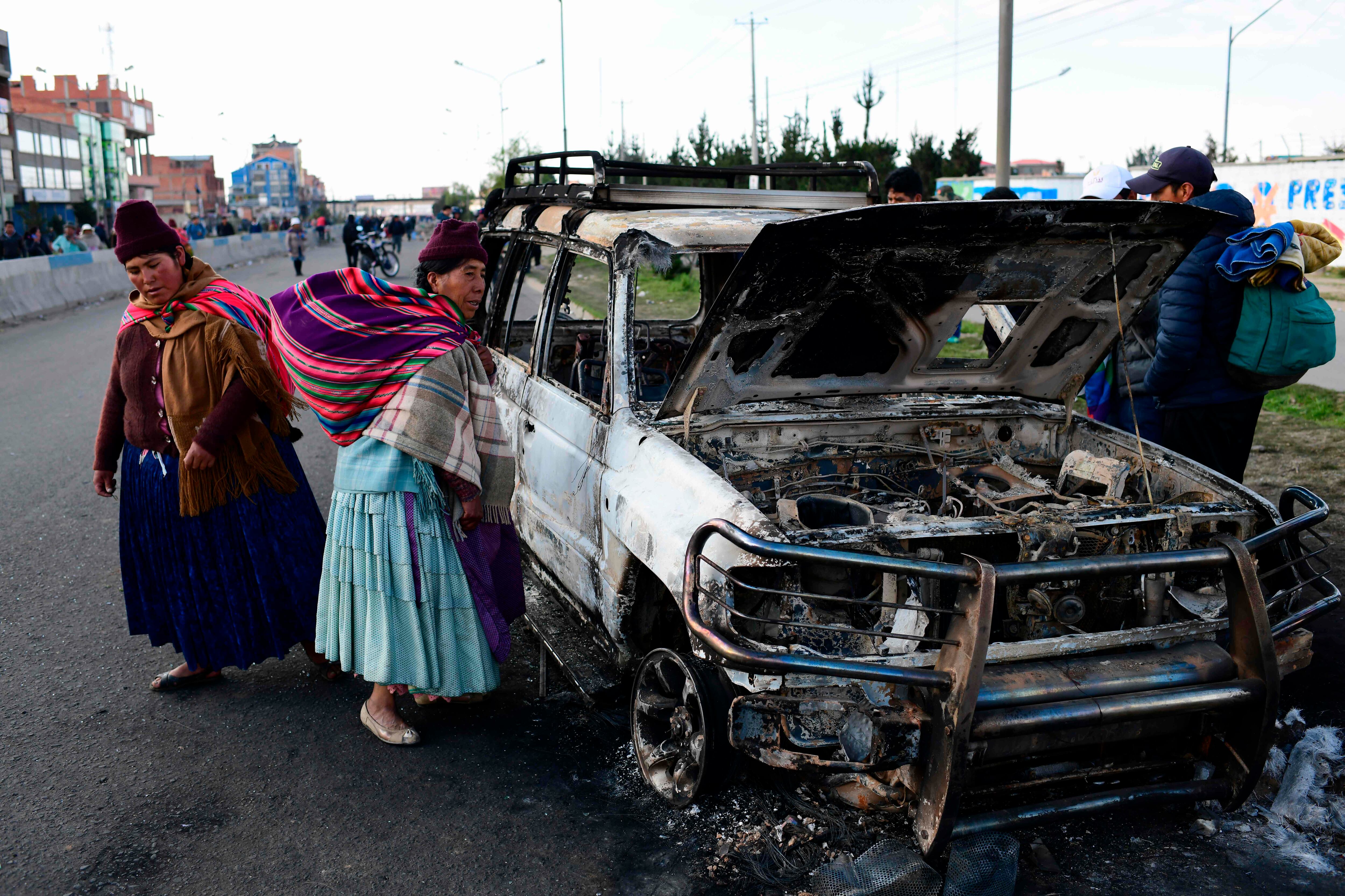 Los pobladores, que pretenden llegar a La Paz con sus muertos, en un abierto desafío a las nuevas autoridades, acusan a las fuerzas oficiales de haber disparado contra la manifestación que rodeaba la distribuidora de Senkata. El gobierno interino niega la responsabilidad en las muertes.