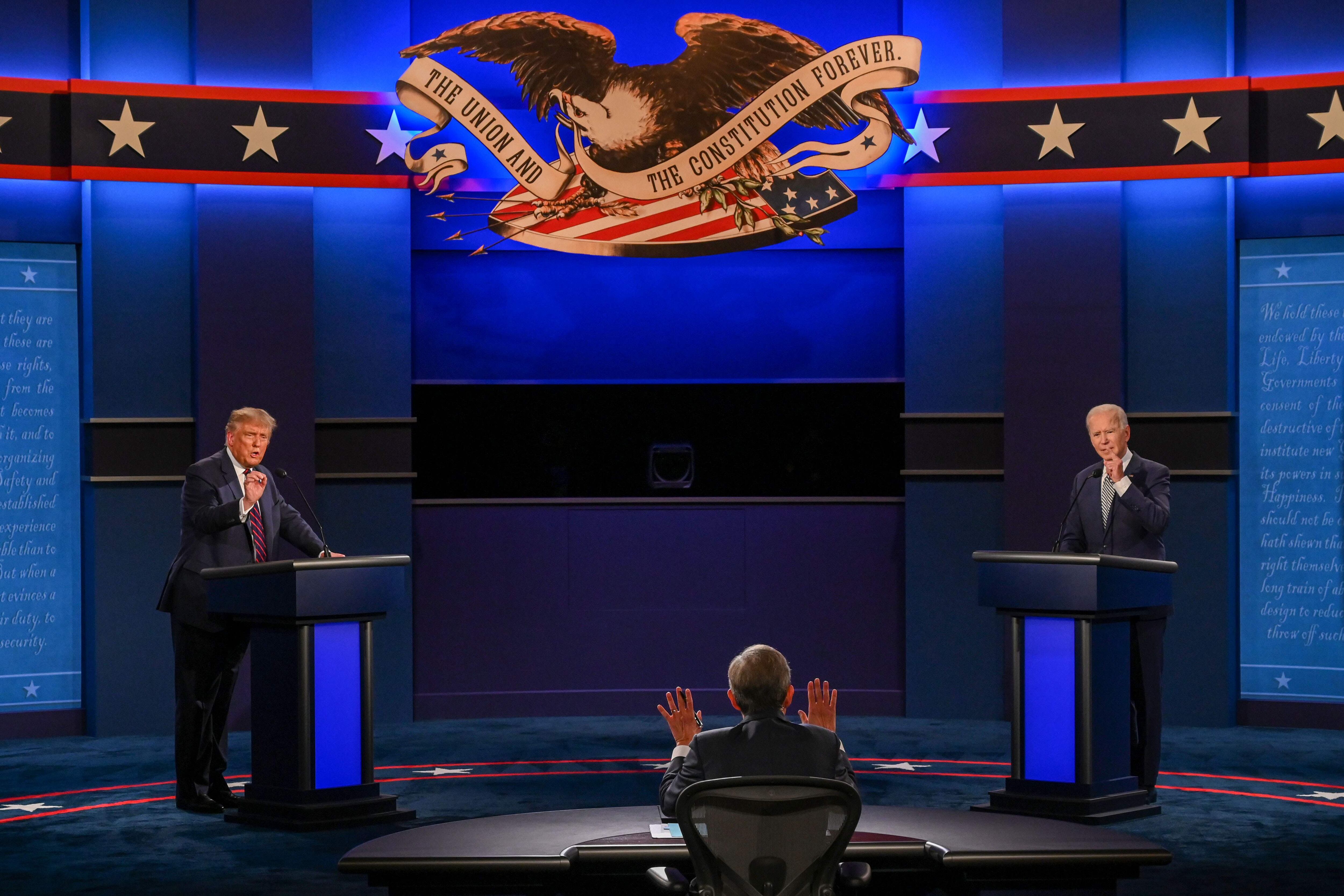 Una moneda lanzada al aire determinó que Joe Biden podía elegir el lugar que deseaba ocupar en el podio -escogió la derecha- y el orden de las declaraciones finales. Trump tendrá la última palabra en el debate.