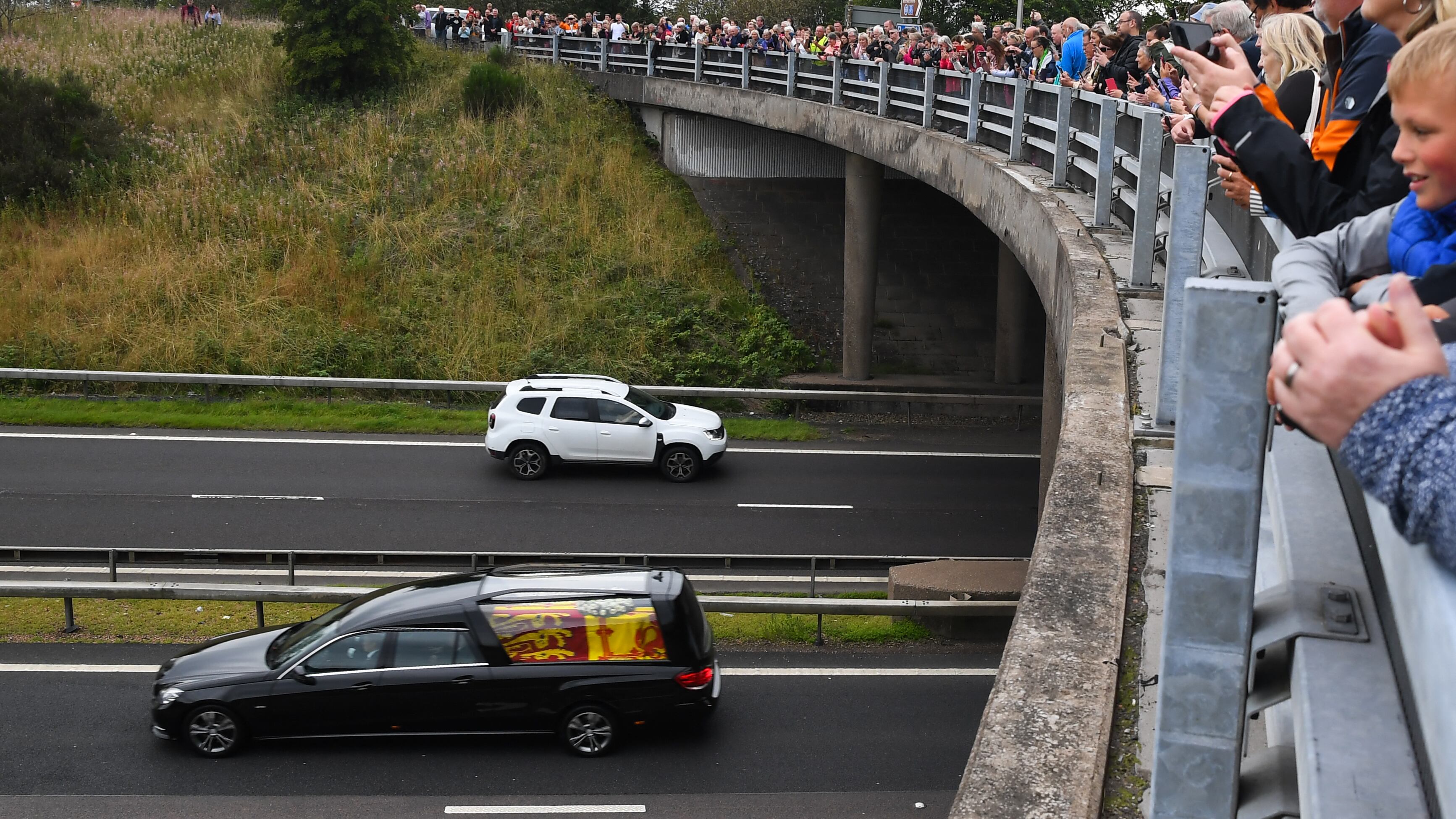 Poco antes de las 4:30 p. m. (hora local), el cortejo fúnebre penetró en el Palacio de Holyroodhouse, residencia oficial de los reyes en Escocia, tras recorrer las calles de Edimburgo, donde miles de personas aplaudieron a su paso, al término de seis horas de viaje.