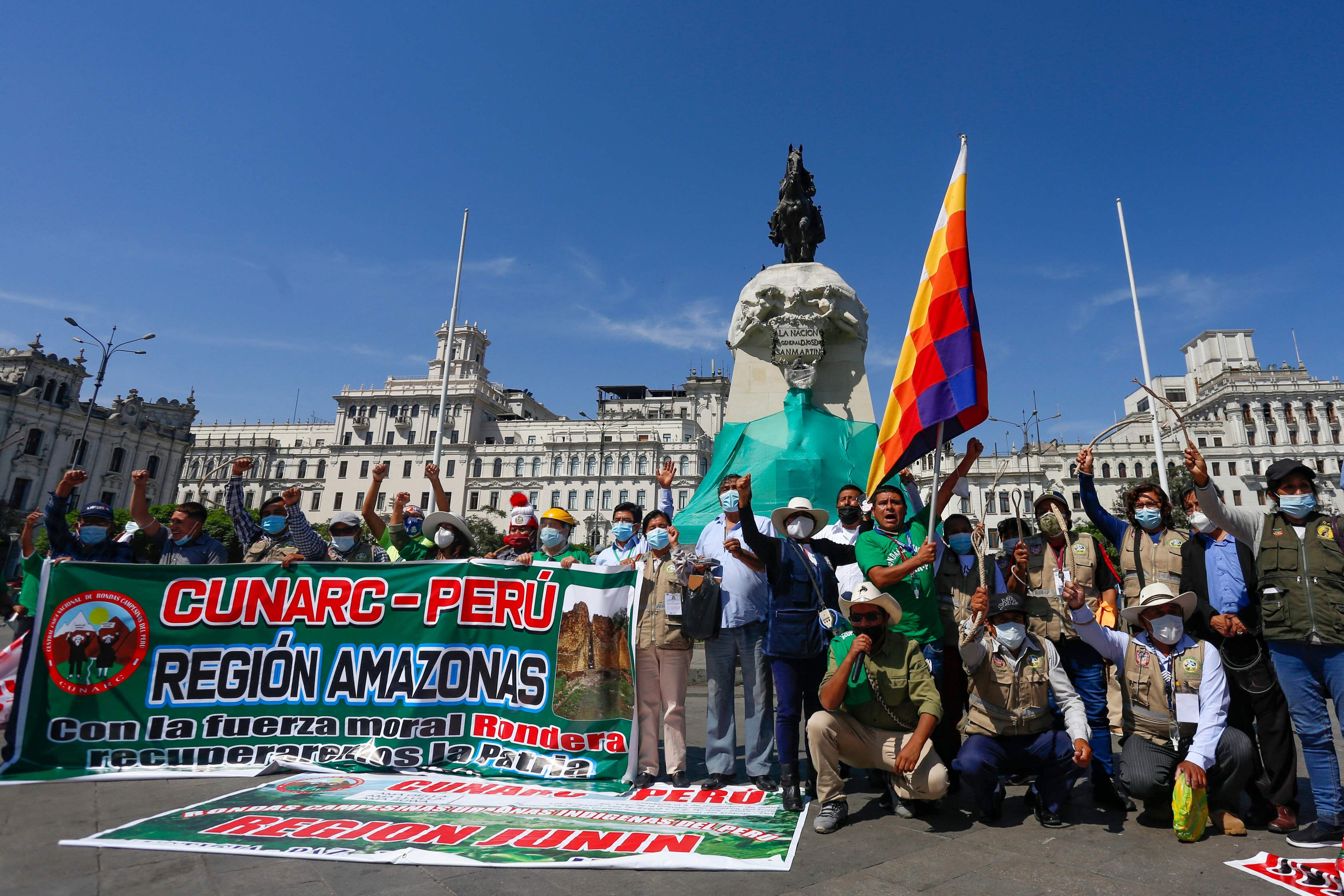 Lima. “¡En costa, sierra y selva, Pedro ya ganó!”. La frase se repite con bronca entre campesinos ataviados con sus trajes típicos y látigo en mano que han llegado a Lima desde el altiplano peruano, en la frontera con Bolivia, para defender su voto por el izquierdista Pedro Castillo.