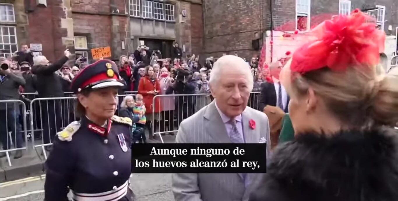 El 6 de diciembre, un hombre de 28 años fue detenido por poco tiempo por haber lanzado también un huevo contra el nuevo soberano, de 73 años, en una visita a la ciudad de Luton, al norte de Londres. Fue acusado de atentar contra el orden público.