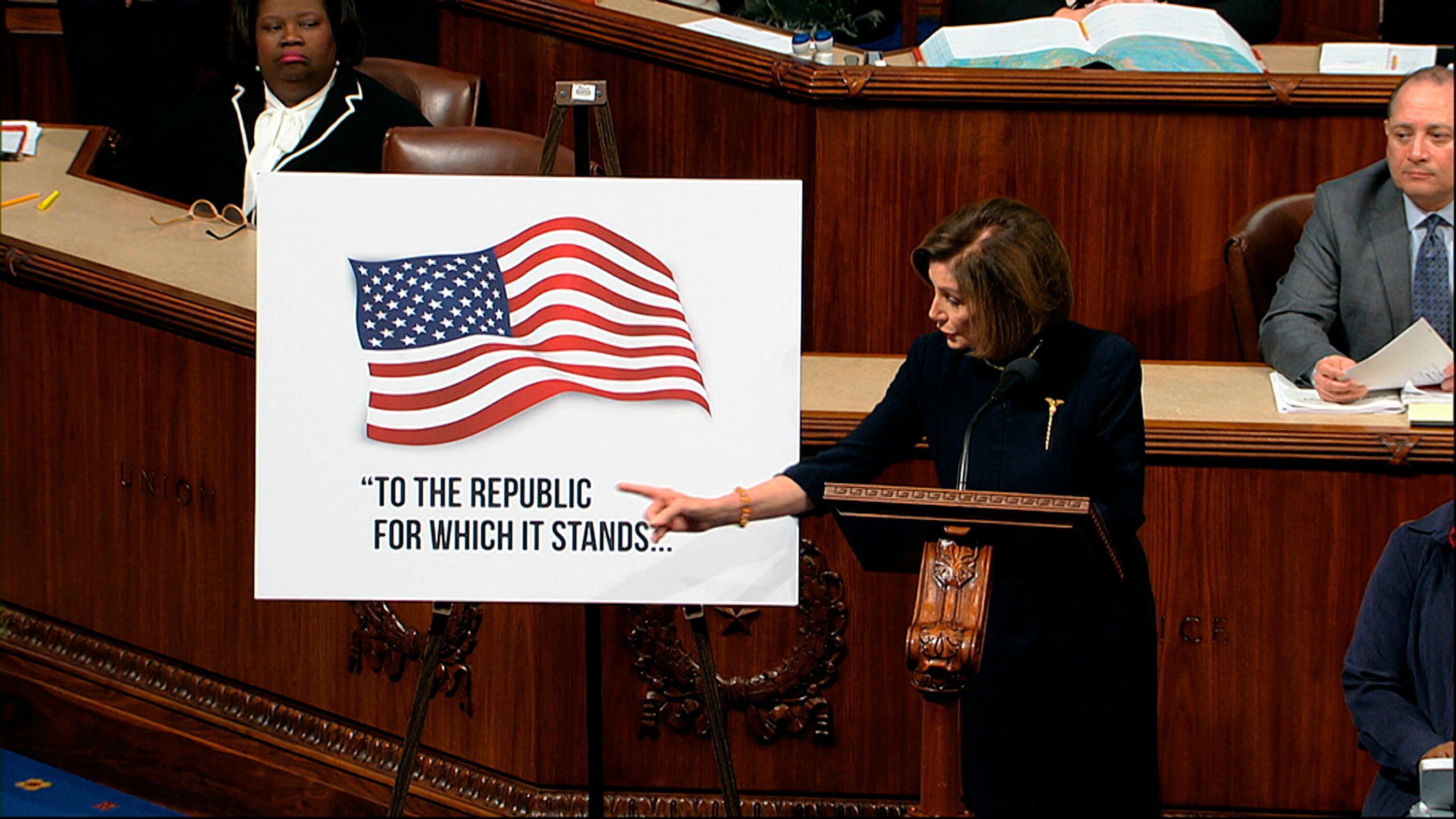 “En Estados Unidos, nadie está por encima de la ley”, continuó la dirigente. “En este momento sombrío de nuestra historia nacional, debemos respetar nuestro juramento de defender la Constitución de todos nuestros enemigos, sean externos o internos”.