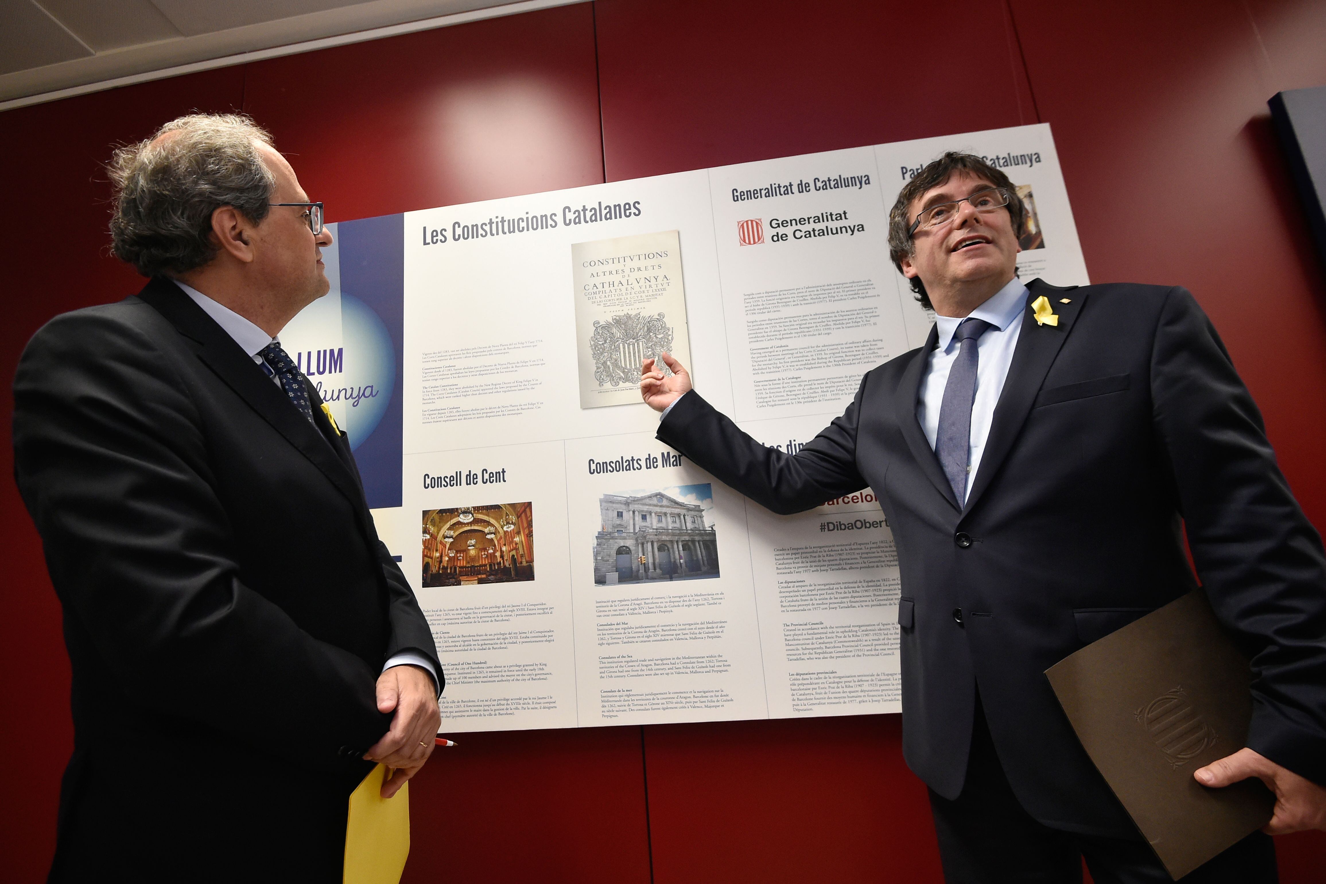 Signo de su creciente influencia, el líder independentista y Quim Torra, que lo considera como el presidente legítimo, se reunieron en la mañana en la sede de la delegación de Cataluña ante la Unión Europea con miembros del gobierno actual y del anterior.