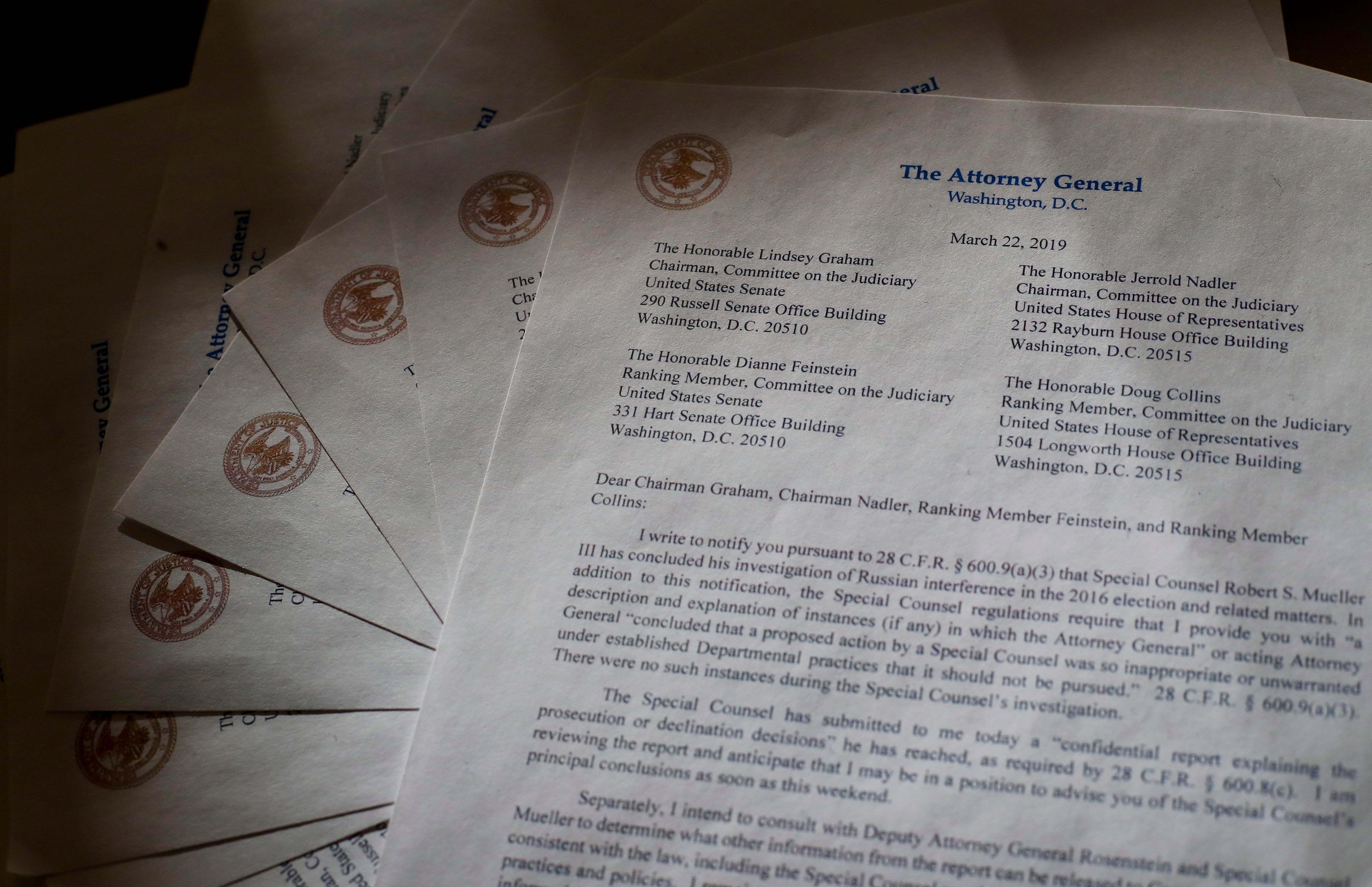 En su carta, Barr dijo a los legisladores que consultaría con su adjunto, el vicefiscal general, Rod Rosenstein, y con Mueller para determinar qué otras partes del informe se pueden entregar al Congreso y al público.