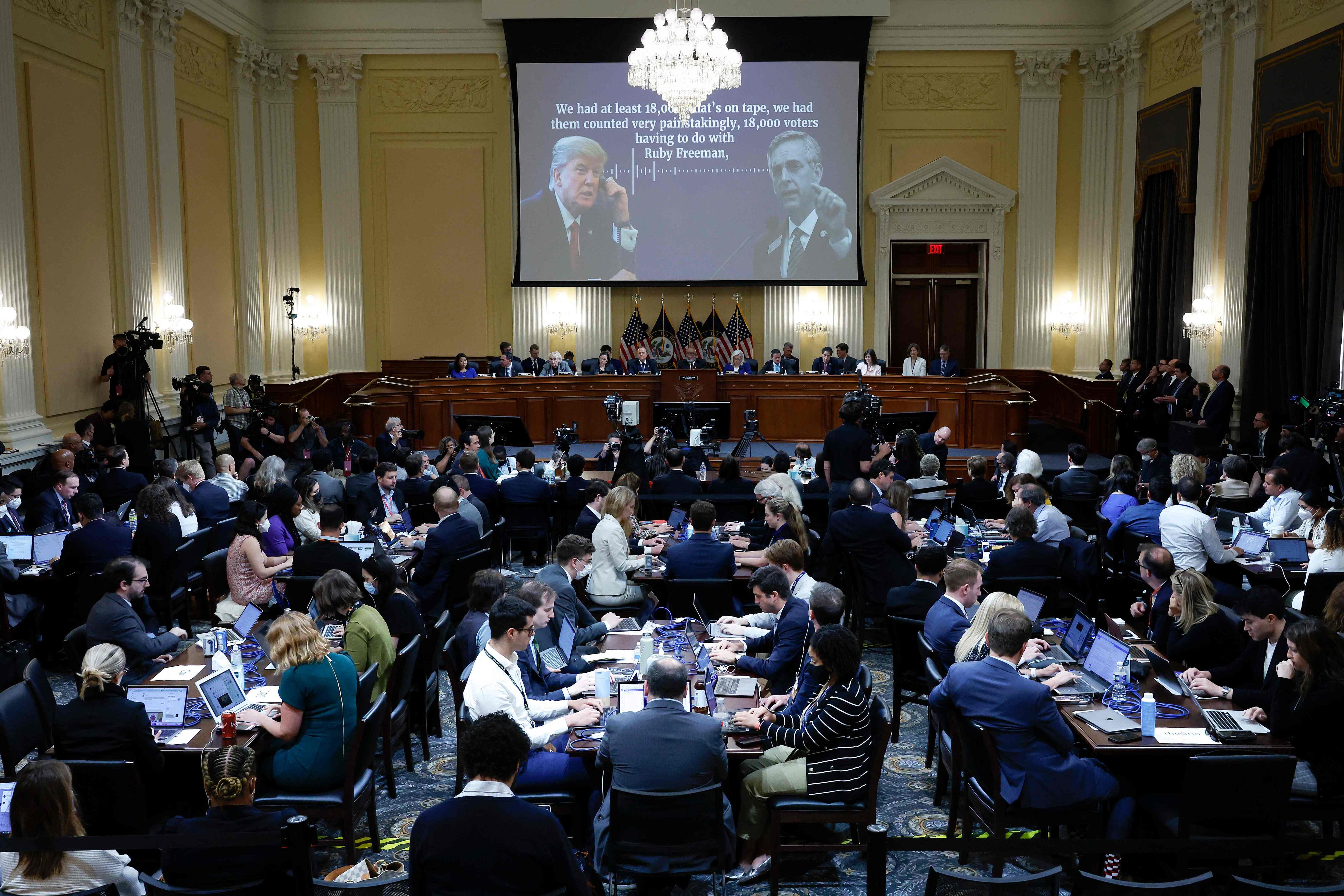 Los miembros del comité que investiga el asalto al Capitolio de enero de 2021, posterior a las elecciones, han dedicado el mes a presentar sus hallazgos iniciales según los cuales Trump lideró una conspiración con múltiples frentes para revertir los resultados, derivando al final en la insurrección en Washington.