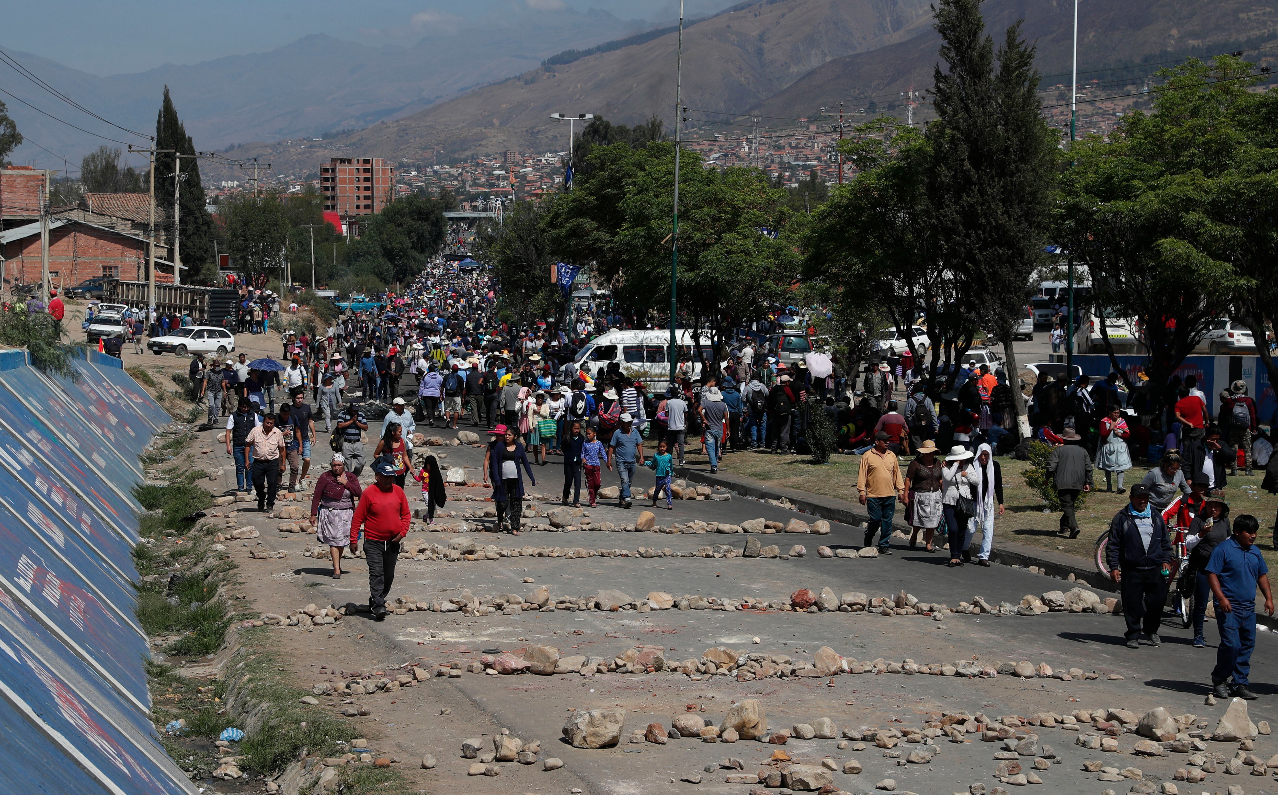 Cientos de cocaleros del Chapare, bastión de Morales, llegaron a Cochabamba, en el centro del país, pero un cordón militar-policial les cerró el paso hasta que el viernes los manifestantes rompieron la barrera y se desencadenó la violencia.