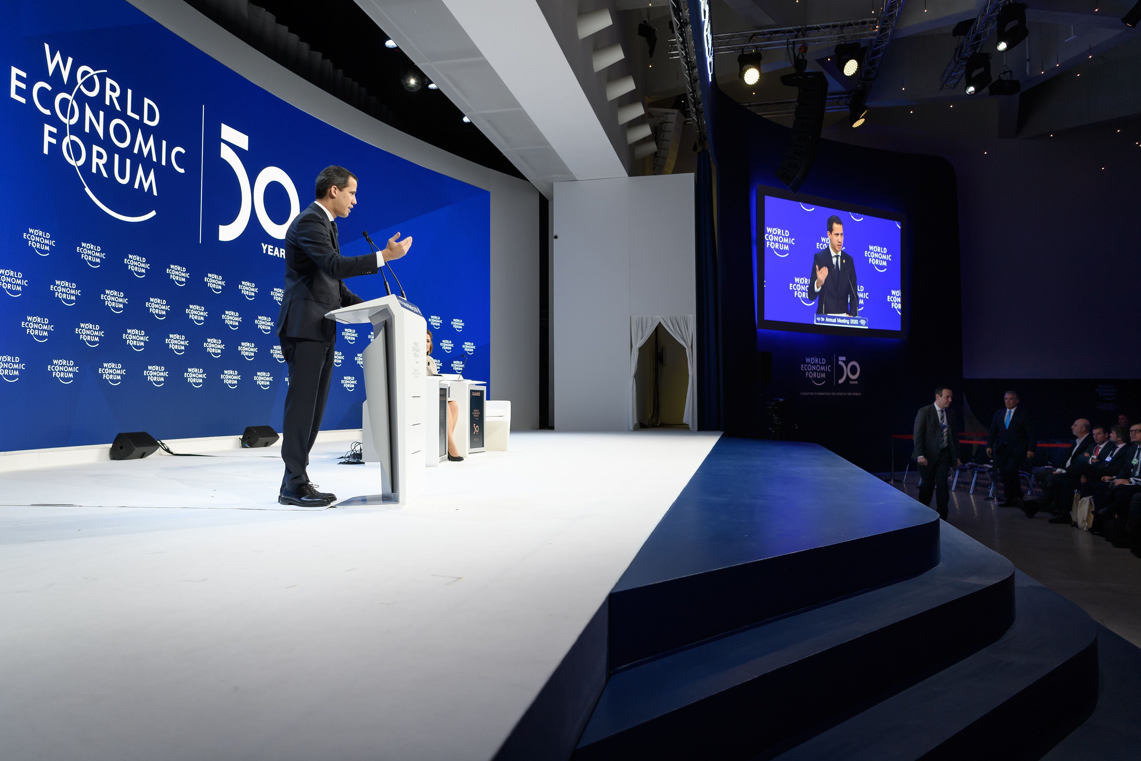 El paso de Guaidó por al Foro Económico Mundial (WEF), que reúne cada año en esta pequeña estación de esquí suiza a la élite económica y política mundial, coincide con el primer aniversario de su juramentación como presidente encargado de Venezuela, el 23 de enero del 2019 en Caracas.