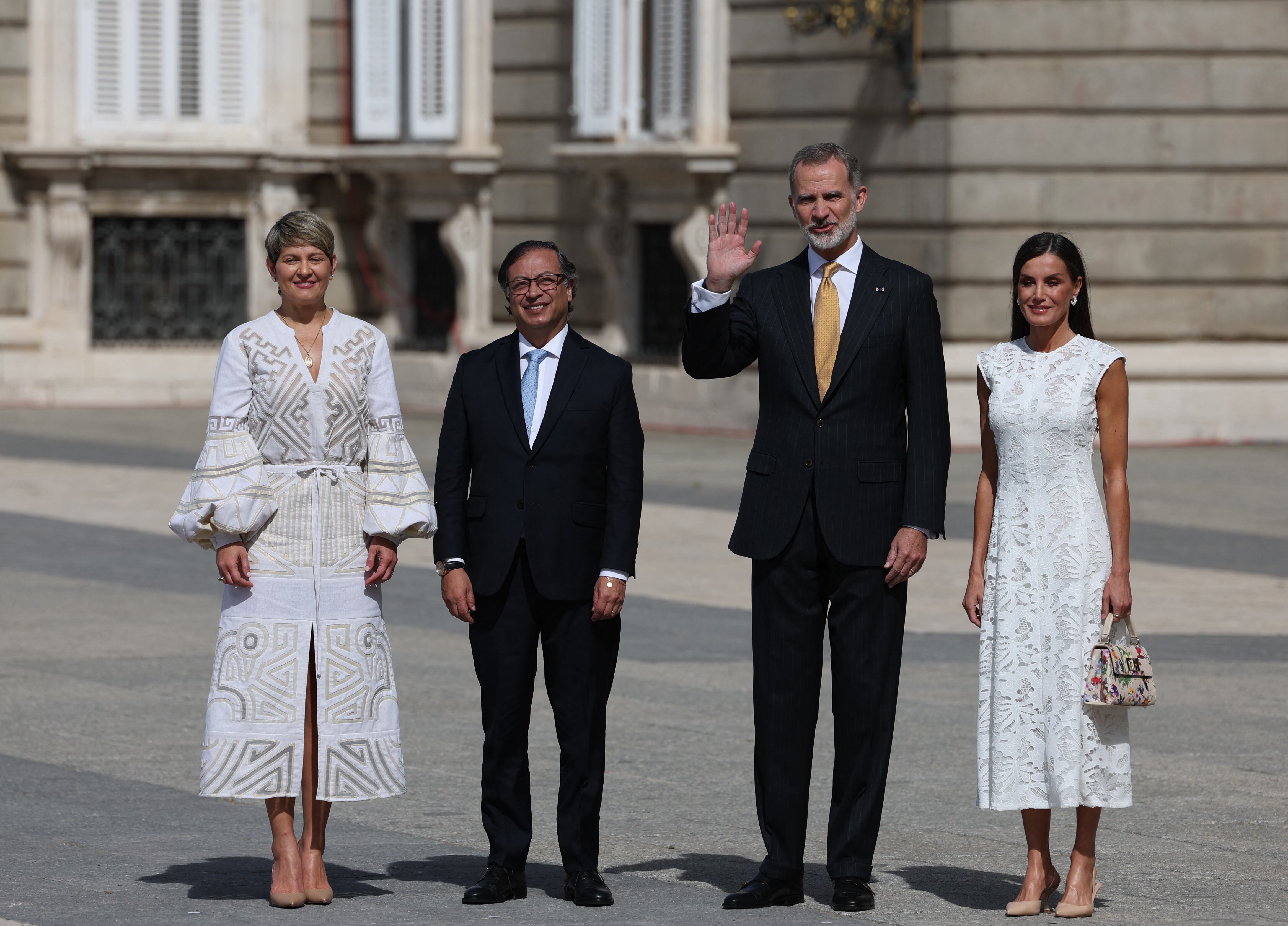 La visita abrió este miércoles con un recibimiento con honores que los reyes de España, Felipe VI y Letizia, ofrecieron a Petro y a la primera dama, Verónica Alcocer, en el Palacio Real.