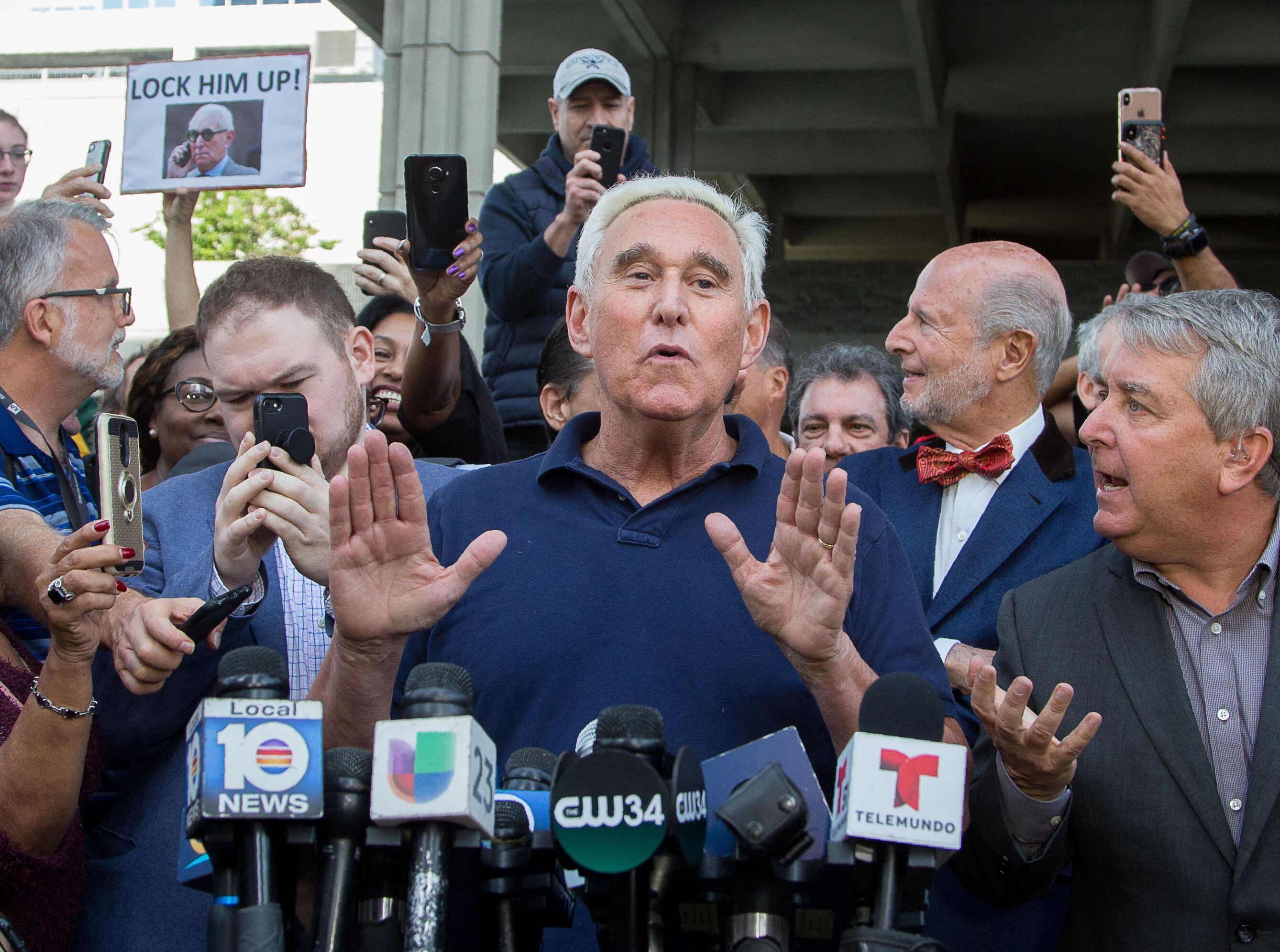 “Esta mañana, al romper el alba, 29 agentes del FBI llegaron a mi casa con 17 vehículos con sus luces encendidas cuando simplemente pudieron haber contactado a mis abogados y yo habría estado más que dispuesto a entregarme de manera voluntaria” , dijo Stone afuera del tribunal.