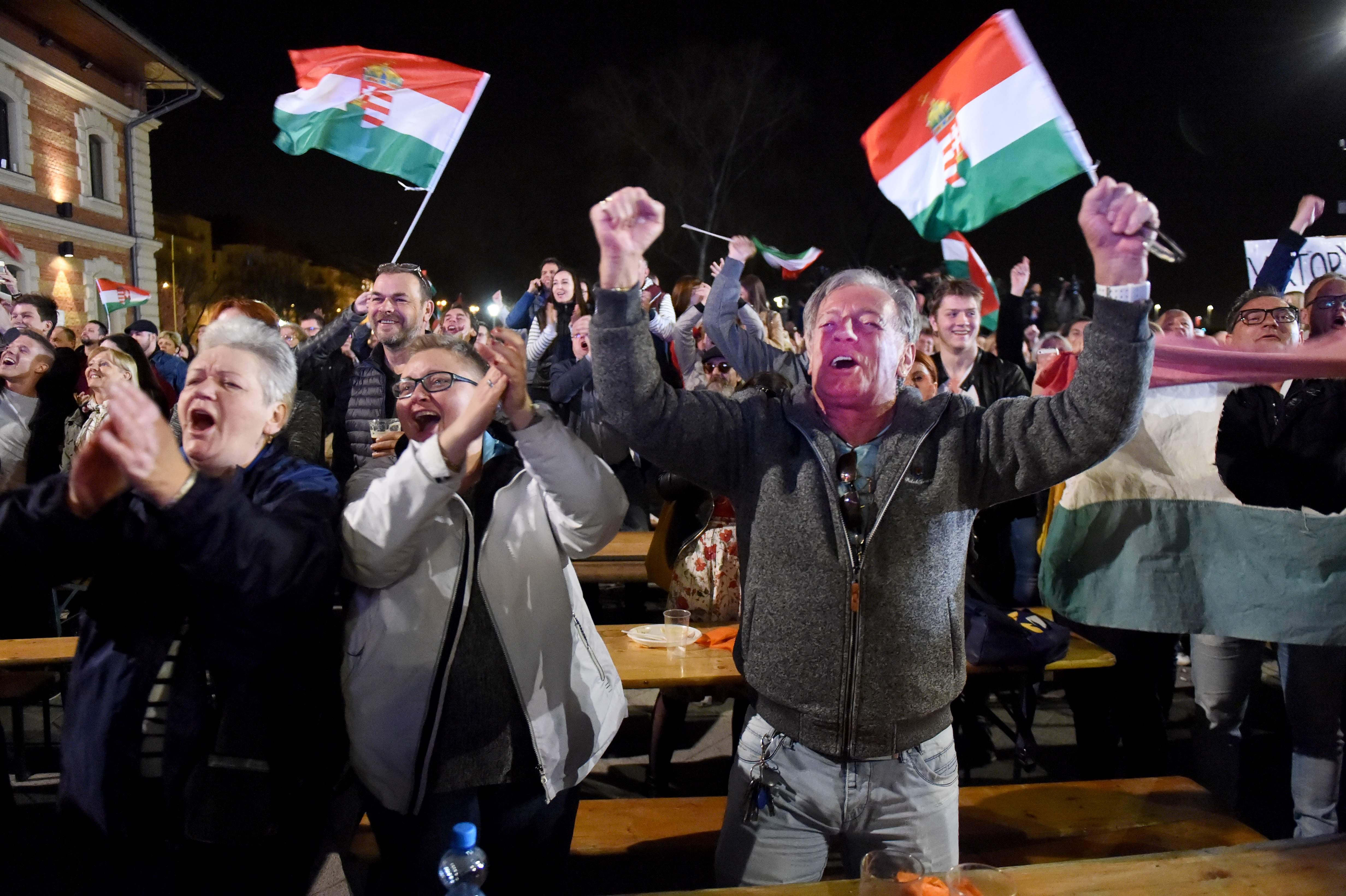 “Es una victoria histórica que nos ofrece la posibilidad de continuar defendiéndonos y de defender Hungría”, declaró el dirigente de 54 años ante una multitud de simpatizantes reunidos a orillas del Danubio y vestidos de naranja, el color de su partido.