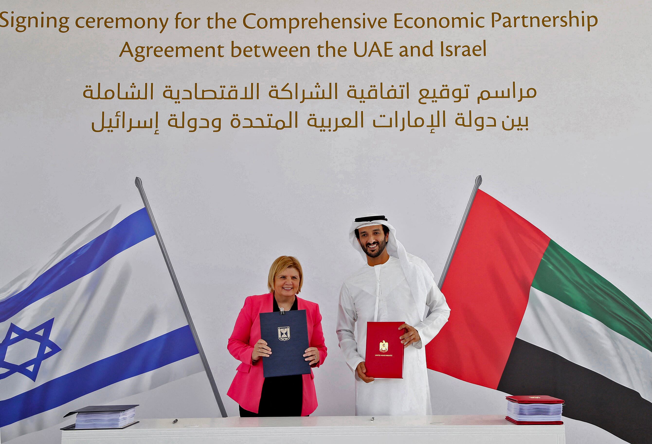 “Israel y los Emiratos firmaron un histórico acuerdo de libre comercio, el primero de este tipo entre Israel y un país árabe”, escribió en Twitter el primer ministro israelí, Naftali Bennett.