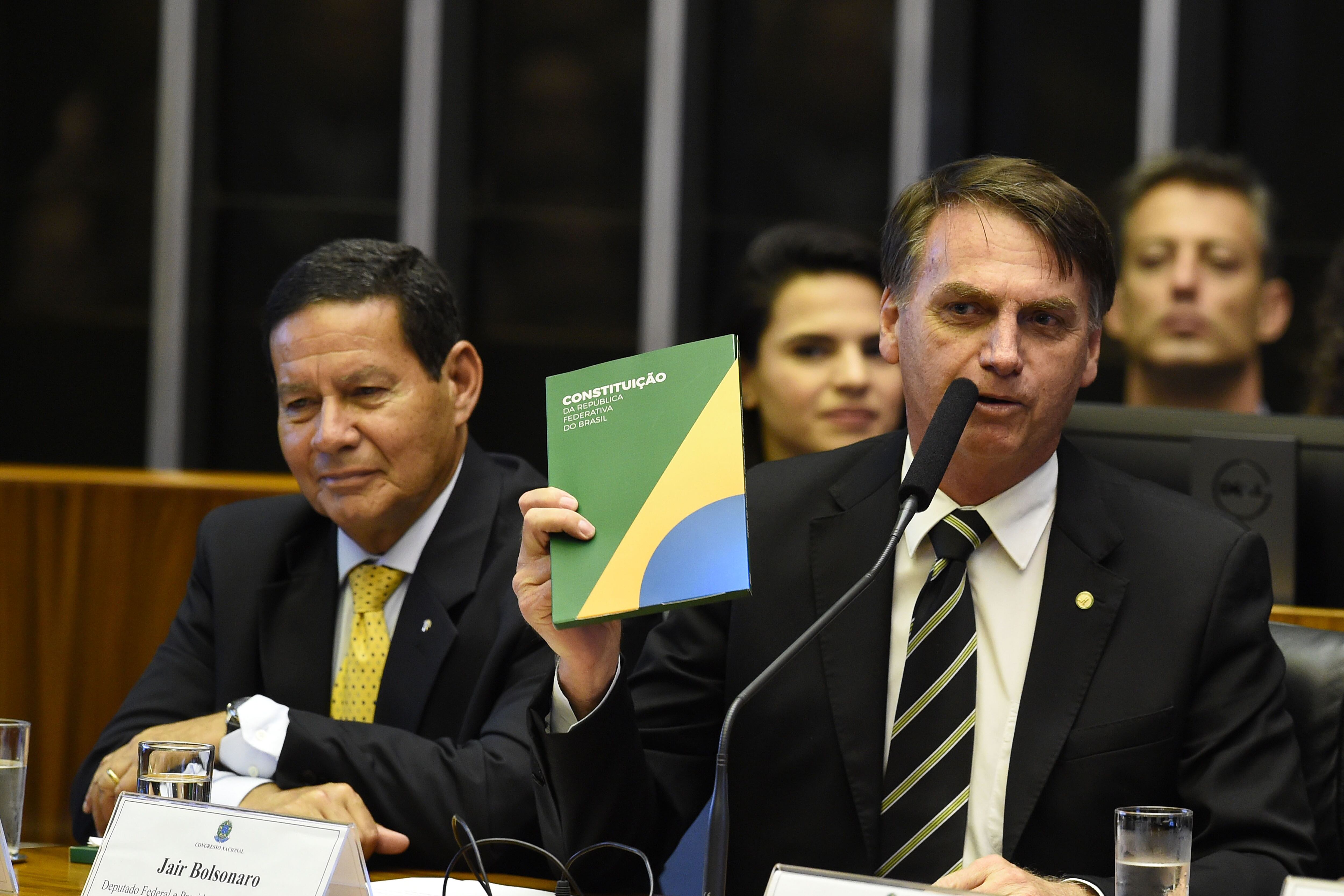 Bolsonaro se declaró durante su campaña “esclavo de la Constitución”, tras verse obligado a desautorizar a su compañero de fórmula, el general retirado Hamilton Mourao, quien había adelantado la idea de redactar otra con un consejo de notables, prescindiendo del Congreso y de los electores.