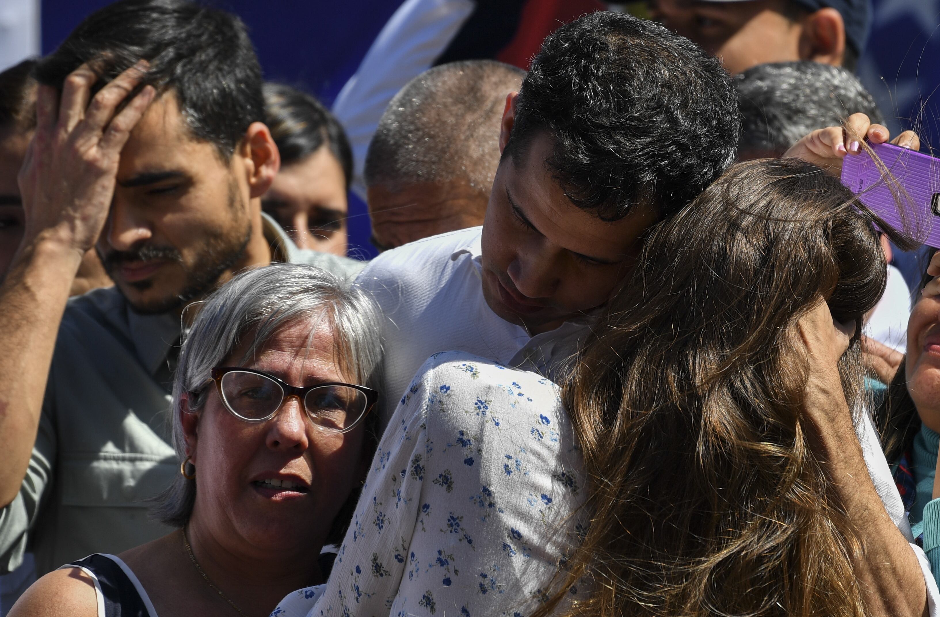 “¡Guaidó presidente!", gritaban el domingo cientos de opositores al recibir al espigado legislador de 35 años, que saludaba a los presentes con la mano derecha, cuya muñeca aún se notaba hinchada tras un intento fallido horas antes de ser esposado por agentes de la Policía política.