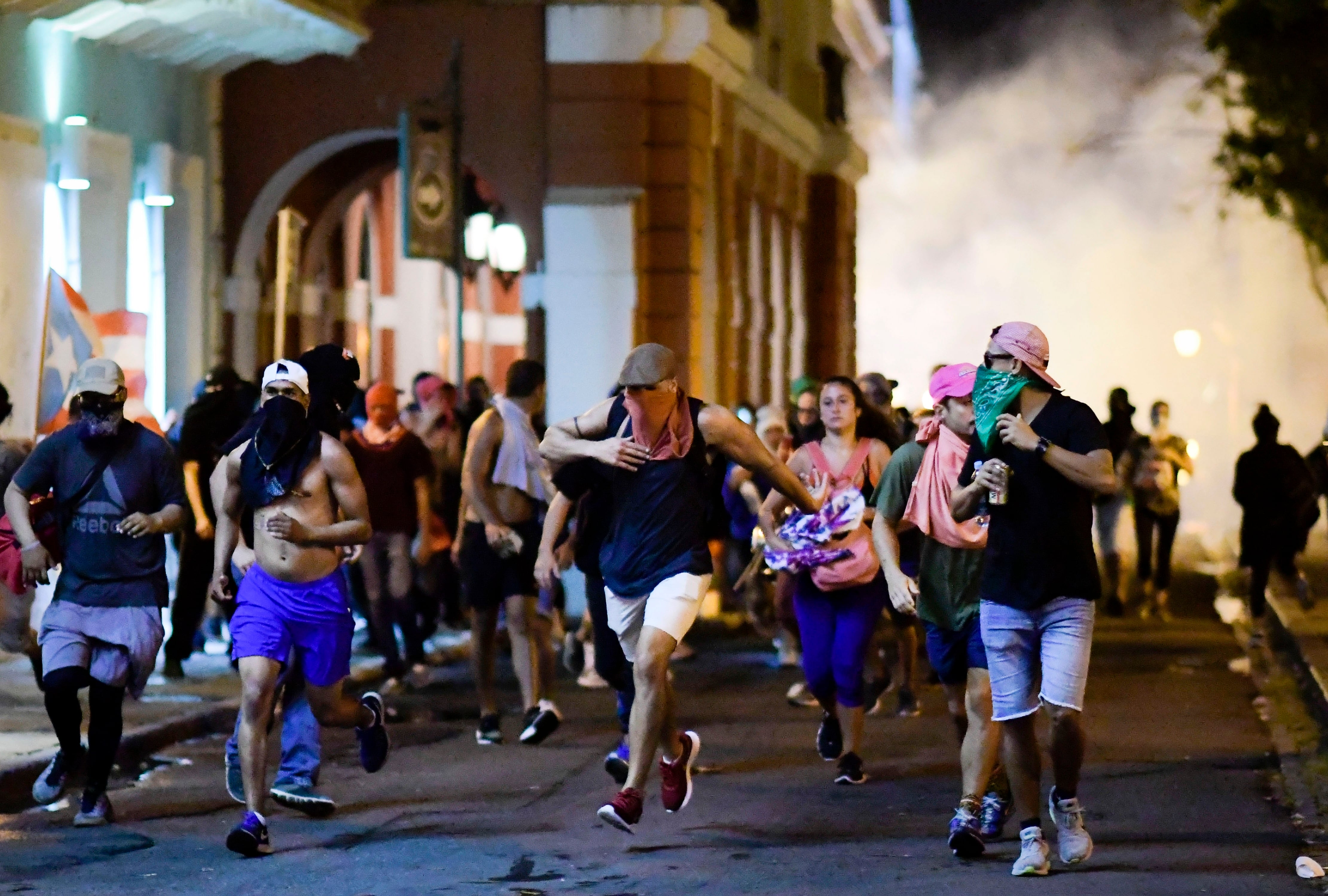 Mientras se aprobaban las órdenes de registro, un pequeño grupo de manifestantes se enfrentó a la Policía durante la noche, y un tanque de gas lacrimógeno provocó el incendio de un vehículo en la vieja sección colonial de la capital de Puerto Rico dodne se sitúa la residencia del gobernador.