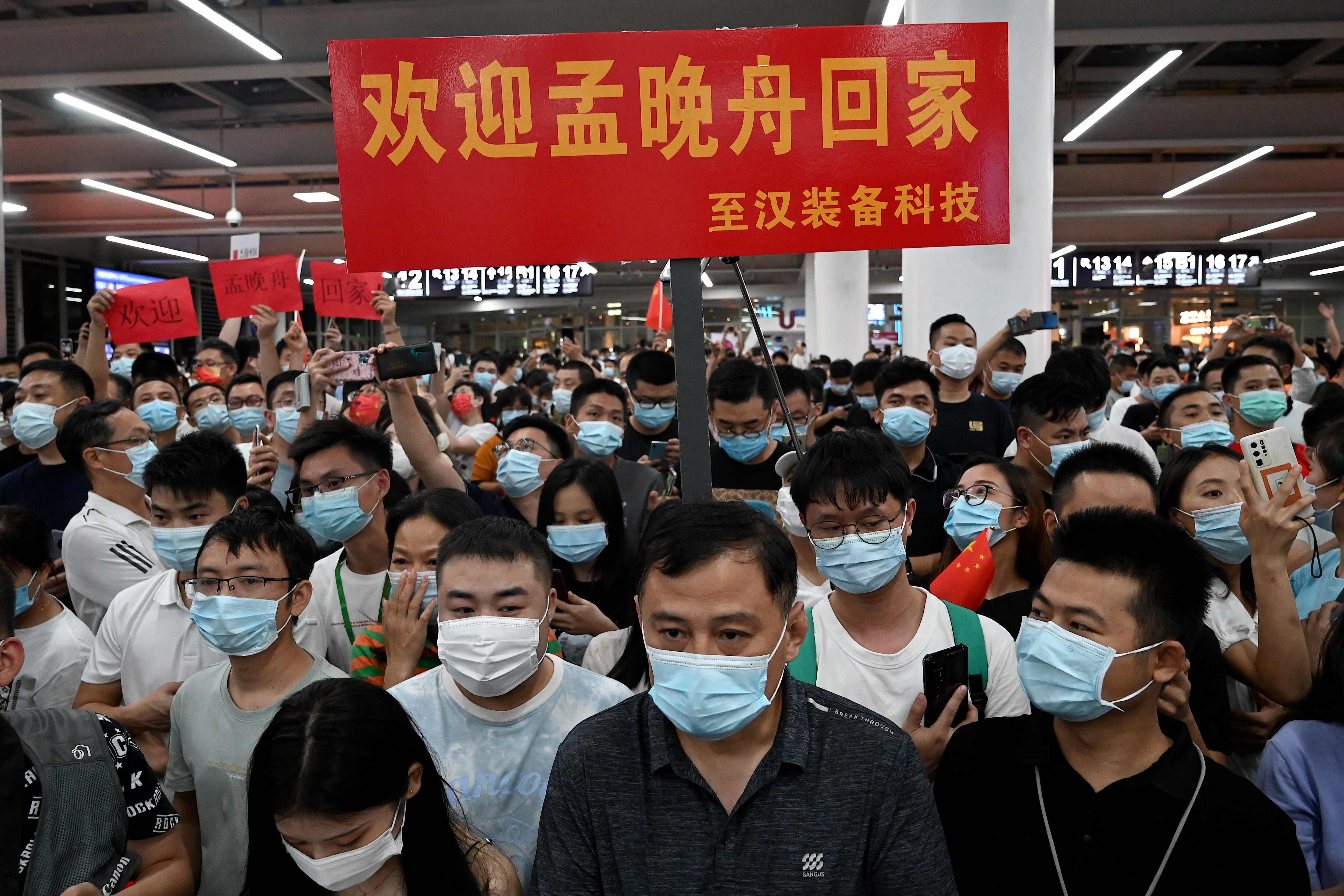La cadena estatal china CCTV mostró el avión en el que viajó Meng al aterrizar en el aeropuerto de Shenzhen, al sur del país, donde se colocó una alfombra roja y se reunieron varios centenares de personas en su apoyo, incluidos empleados de Huawei que ondearon banderas chinas. Uno de ellos le ofreció un ramo de flores.