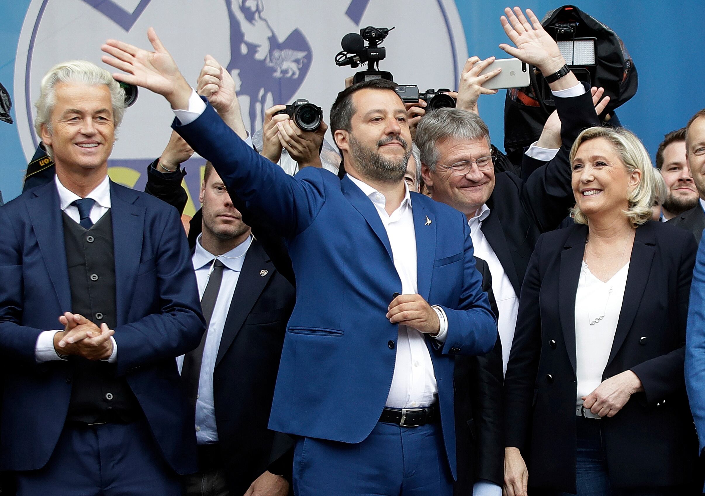 El sábado recibió en Milán a líderes nacionalistas de Europa, incluyendo Le Pen, en busca de unidad antes de las elecciones de este fin de semana para el parlamento europeo.