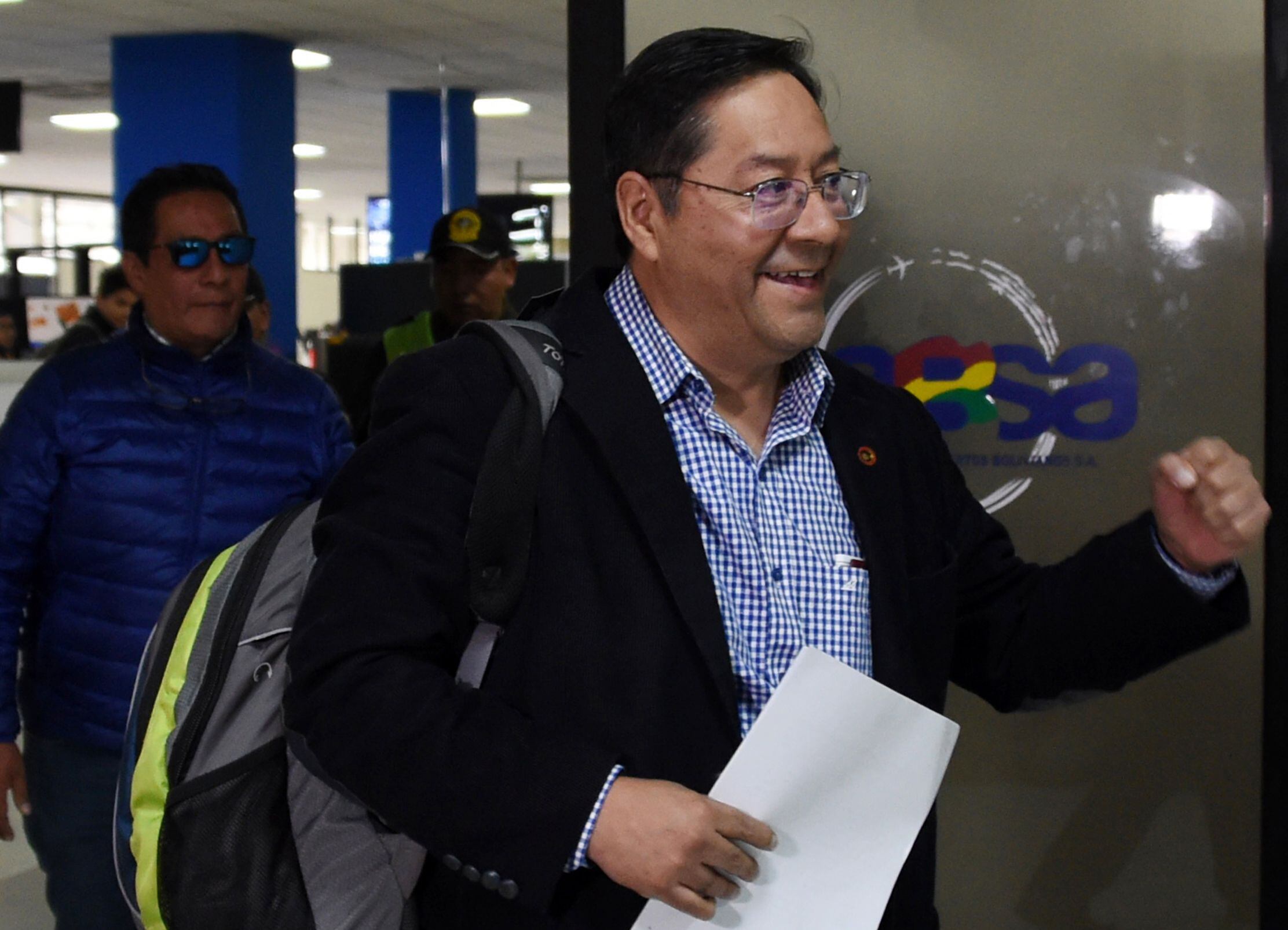 Tras firmar la citación, el candidato presidencial del Movimiento Al Socialismo (MAS) salió del aeropuerto donde fue recibido por su acompañante de fórmula, el excanciller indígena David Choquehuanca y una multitud de partidarios que portaba banderas bolivianas y la 'whipala', que representa a los pueblos indígenas.