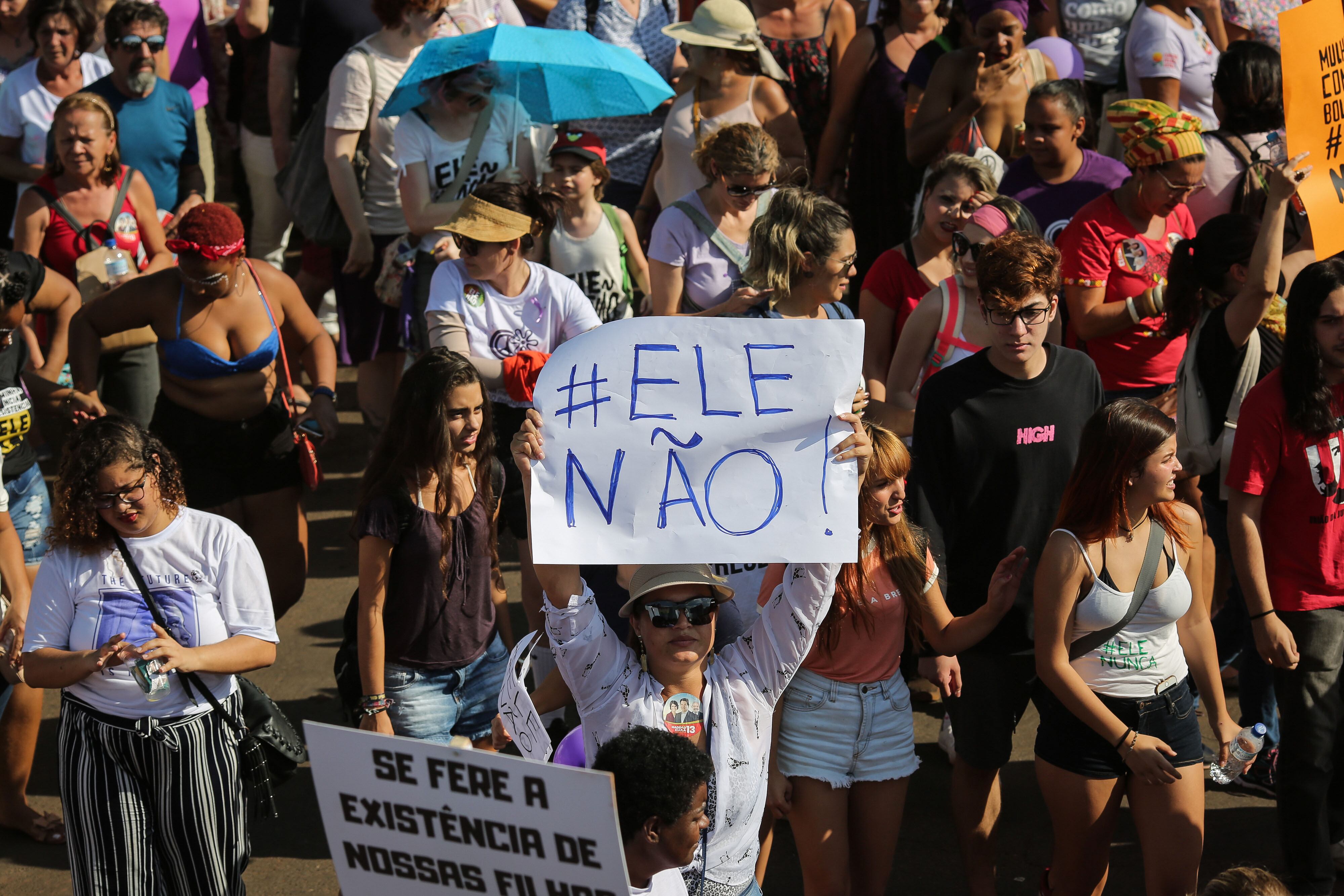 “Él no, él nunca!” , el clamor de las mujeres contra el candidato derechista Jair Bolsonaro tomó la tarde de este sábado las calles de Brasil.