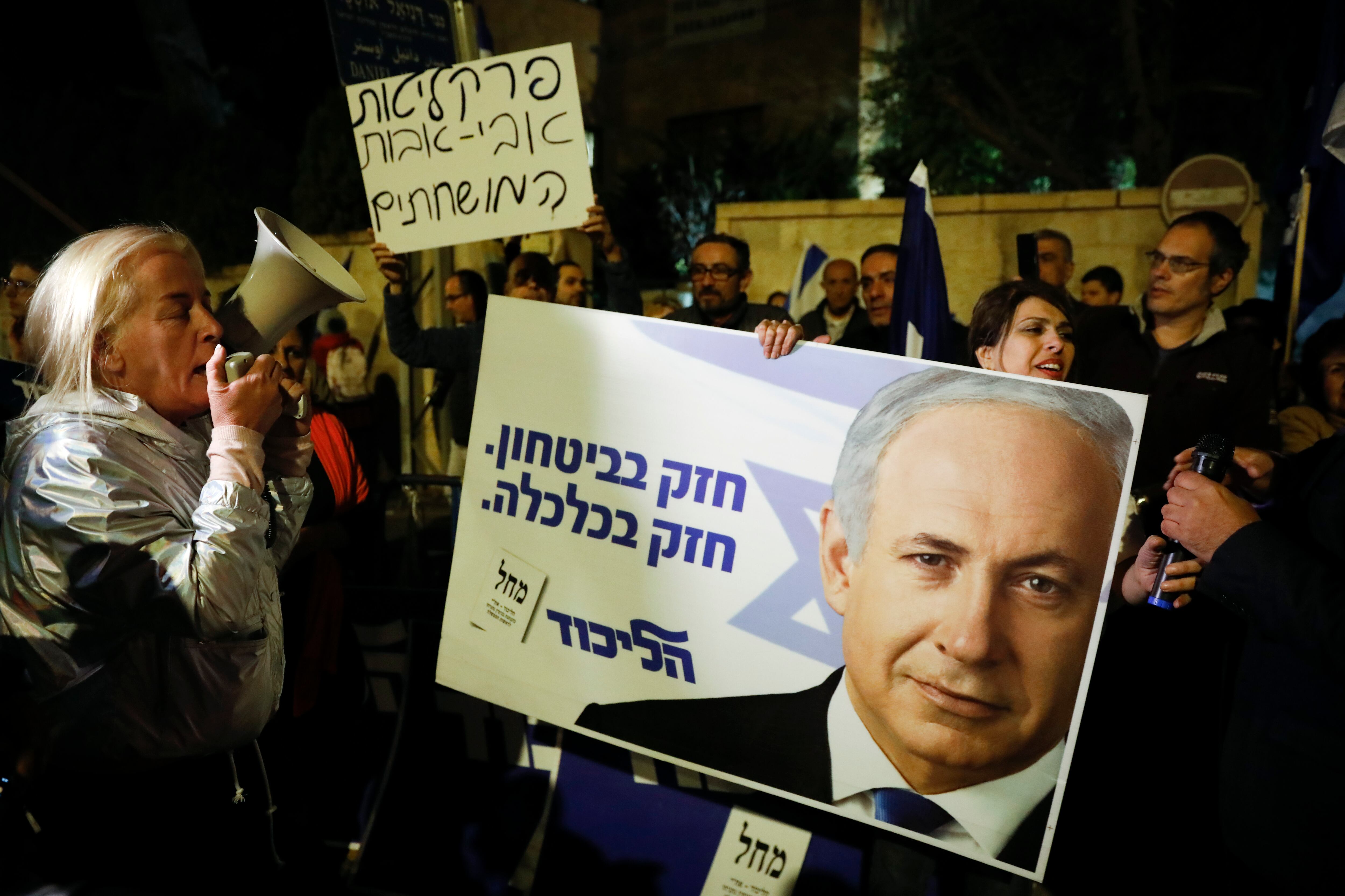 Tras el anuncio del fiscal, decenas de partidarios del primer ministro se reunieron frente a su residencia entonando: "Todos somos Netanyahu!".