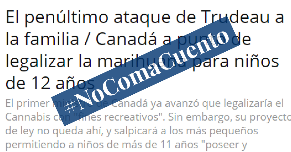 La información da a entender que el proyecto de ley para la legalización del consumo y comercialización de la marihuana en Canadá, propuesto por el gobierno de Justin Trudeau, legalizará el acceso a esa droga para menores mayores de 11 años.