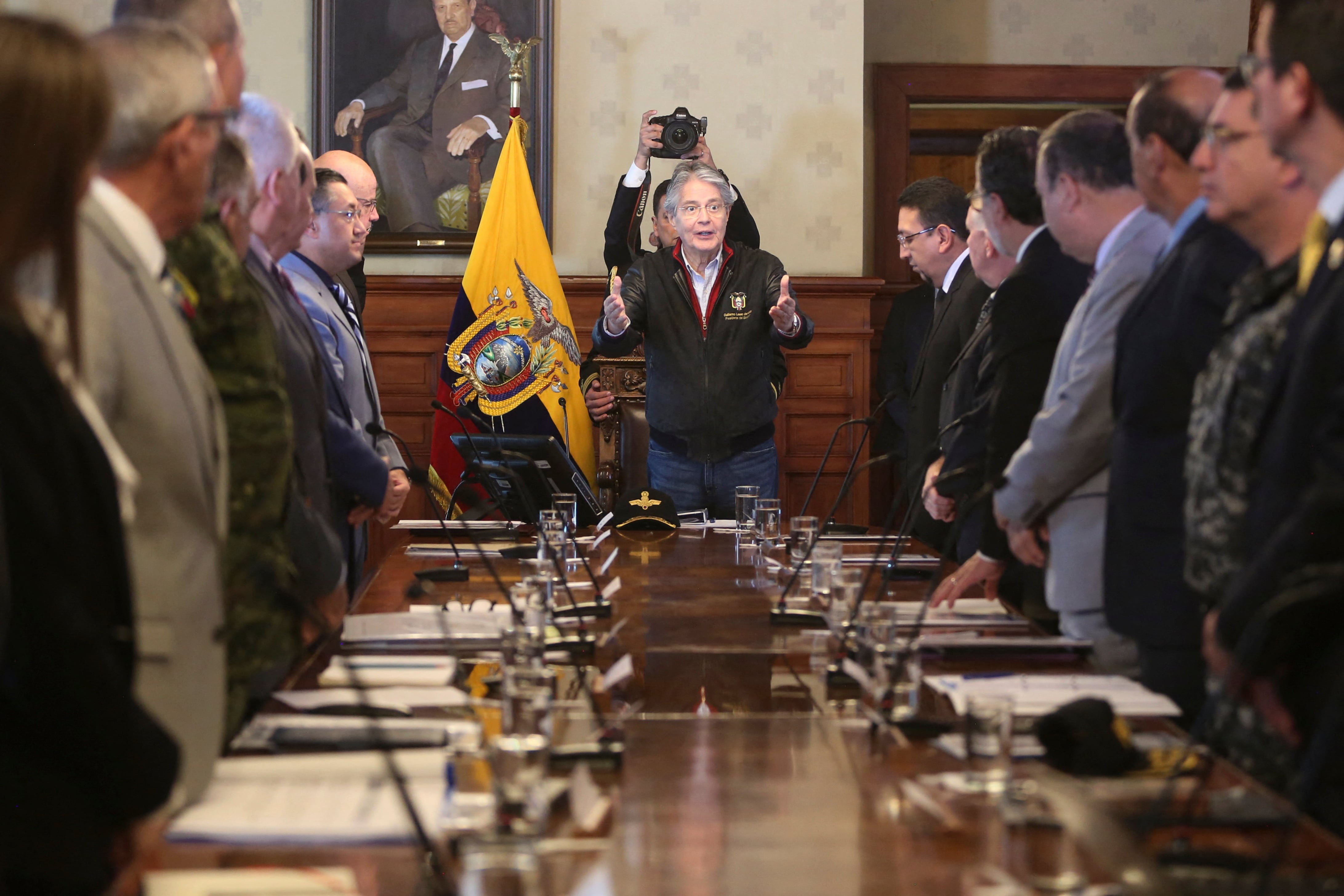 El Cosepe, integrado por todos los poderes estatales y las cúpulas de la Policía y de las Fuerzas Armadas, sostuvo una reunión liderada por el presidente Guillermo Lasso en la sede de gobierno en Quito, la capital.
