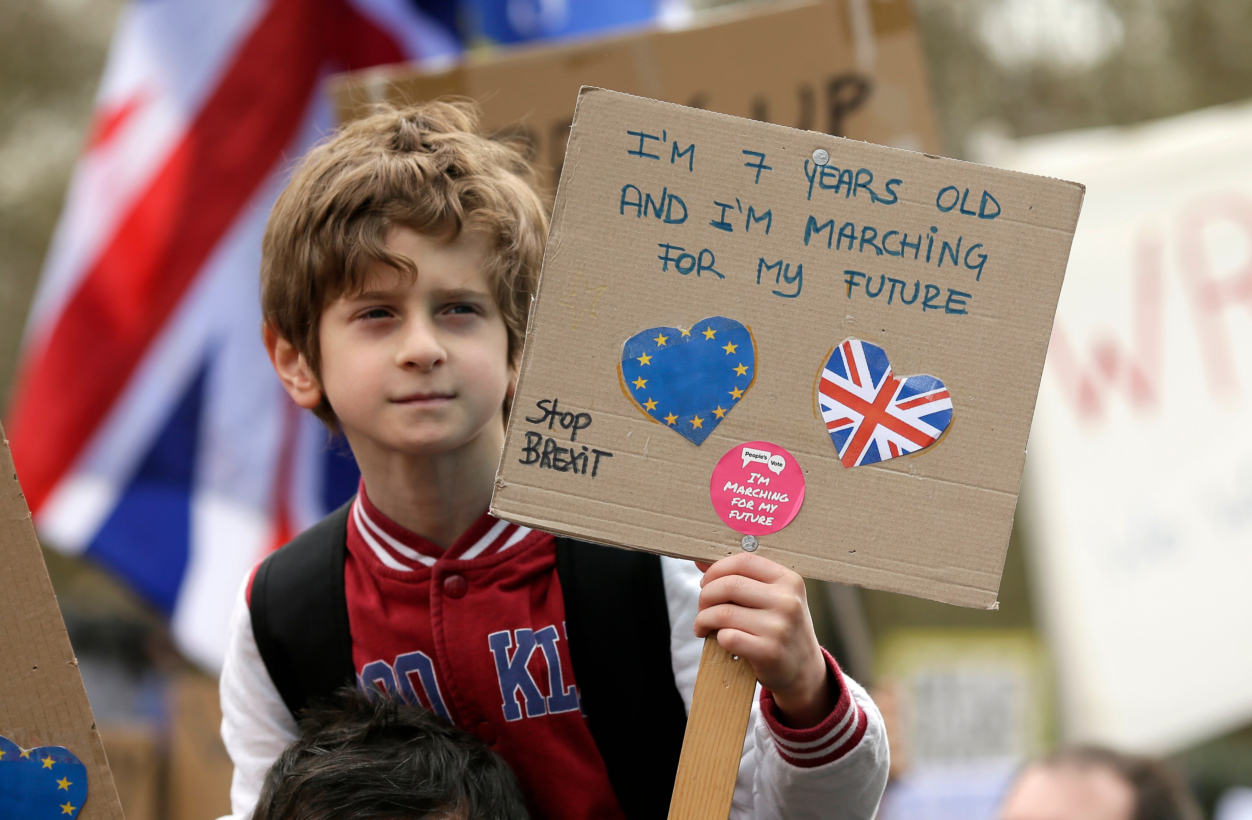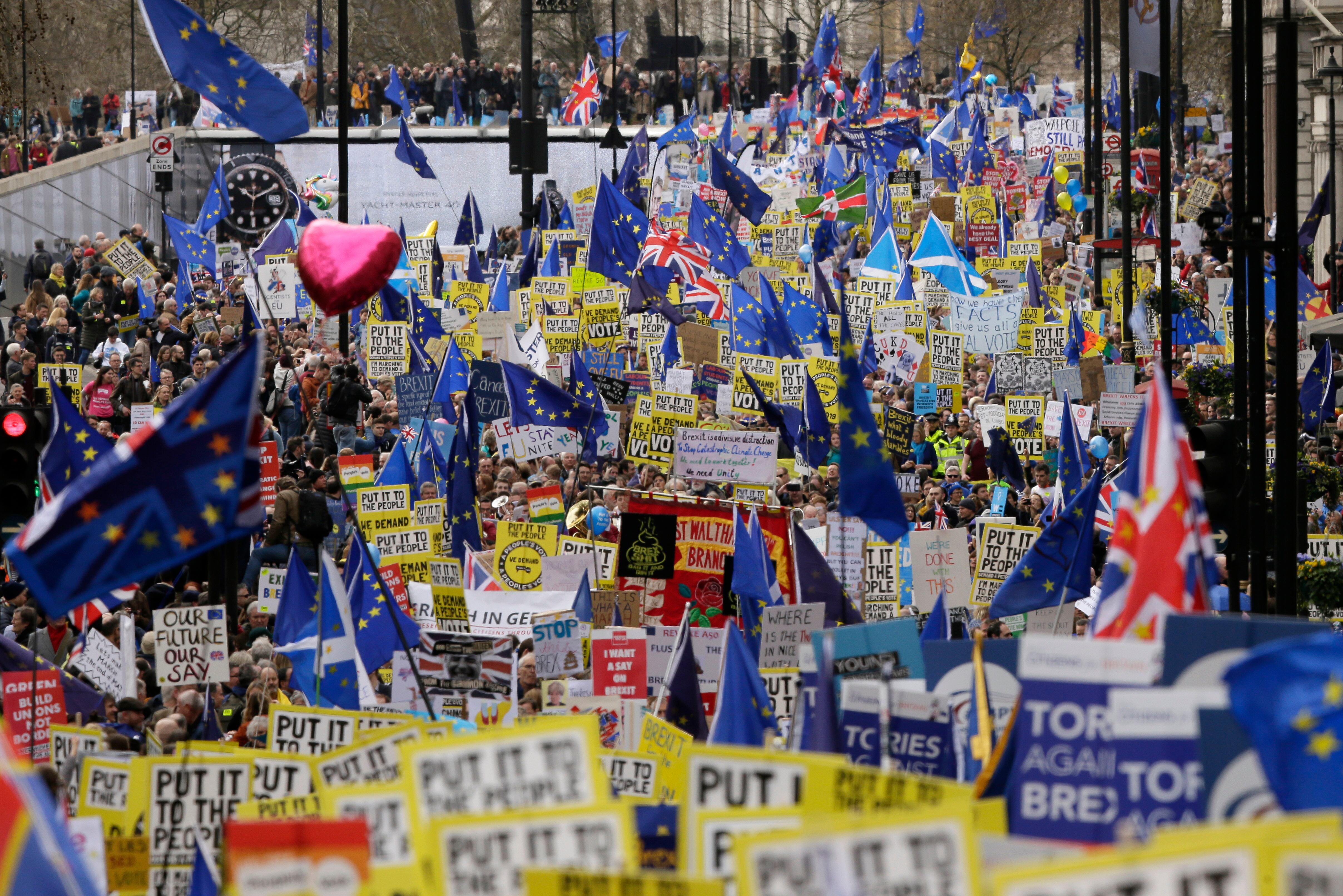 “Pedimos una votación popular”, “Dejar (la UE) no funcionará” o “UE, te amo”, se leía en las pancartas de los manifestantes.