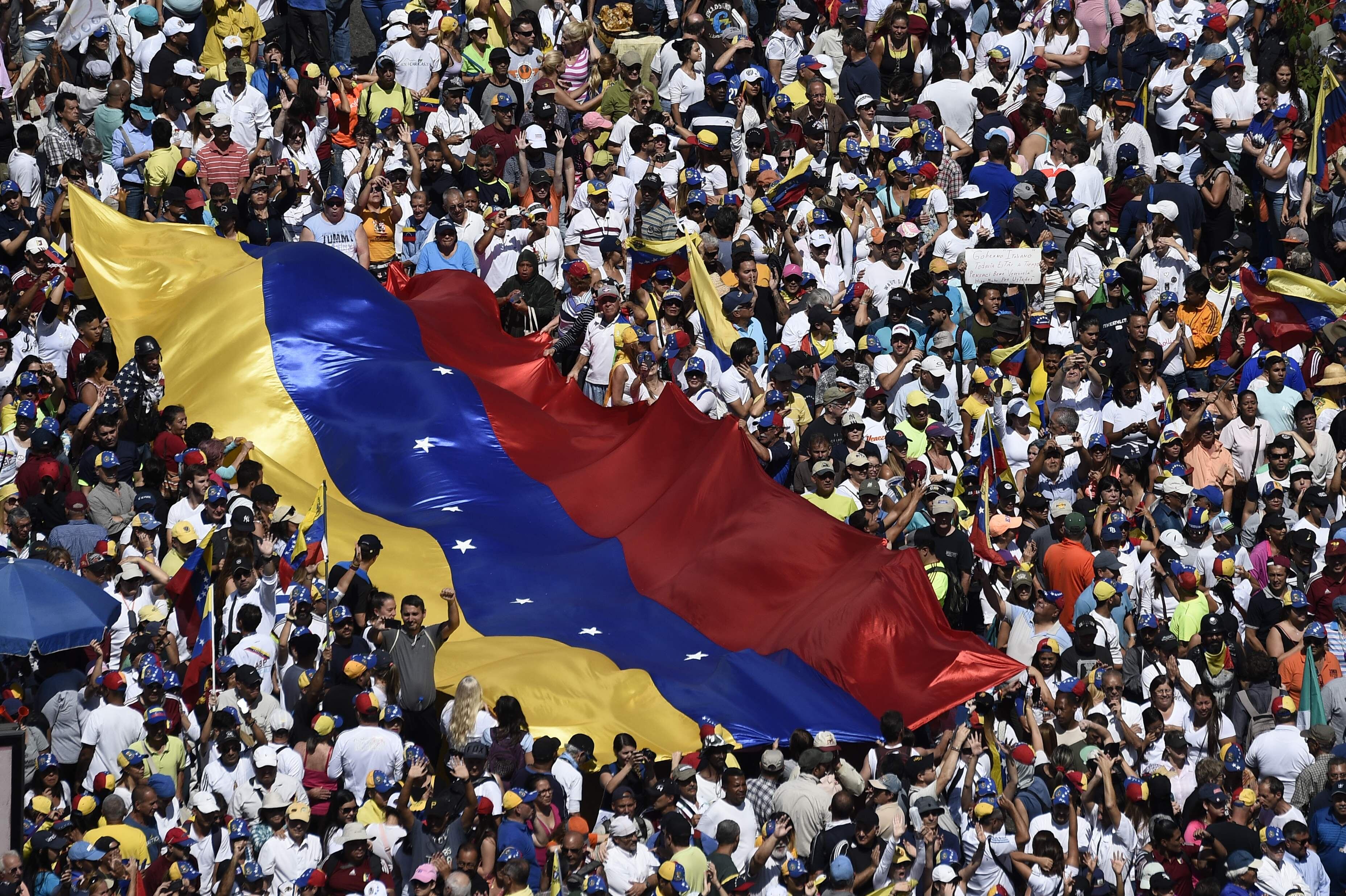 “Fuera dictador”, “Maduro usurpador”, rezaban pancartas opositoras. “Váyanse al carajo, yanquis de mierda”, decía una oficialista.